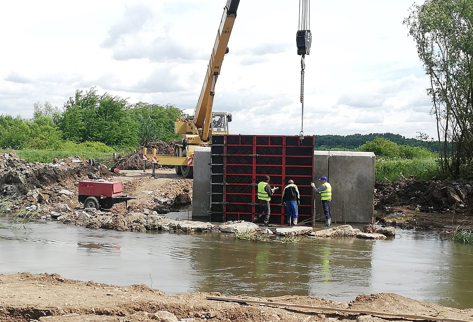 La Ghiroda, a început amenajarea platformelor pentru podul provizoriu, s-au betonat platformele și s-a făcut umplutura pentru a stabiliza malurile.