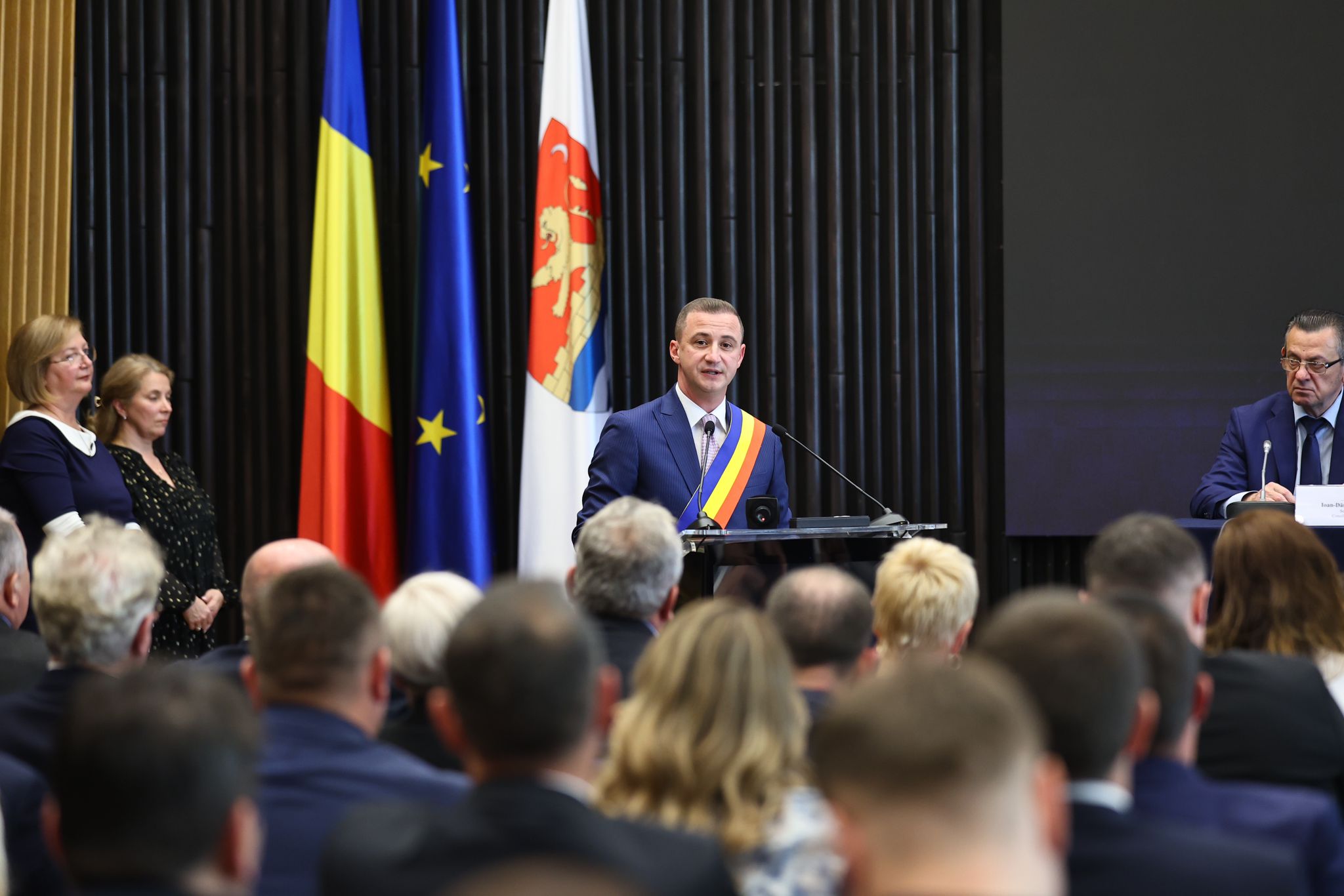 Ceremonia de învestire în funcție a avut loc la Palatul Administrativ din Timișoara, unde au fost prezenți zeci de primari, parlamentari și șefi de instituții deconcentrate.