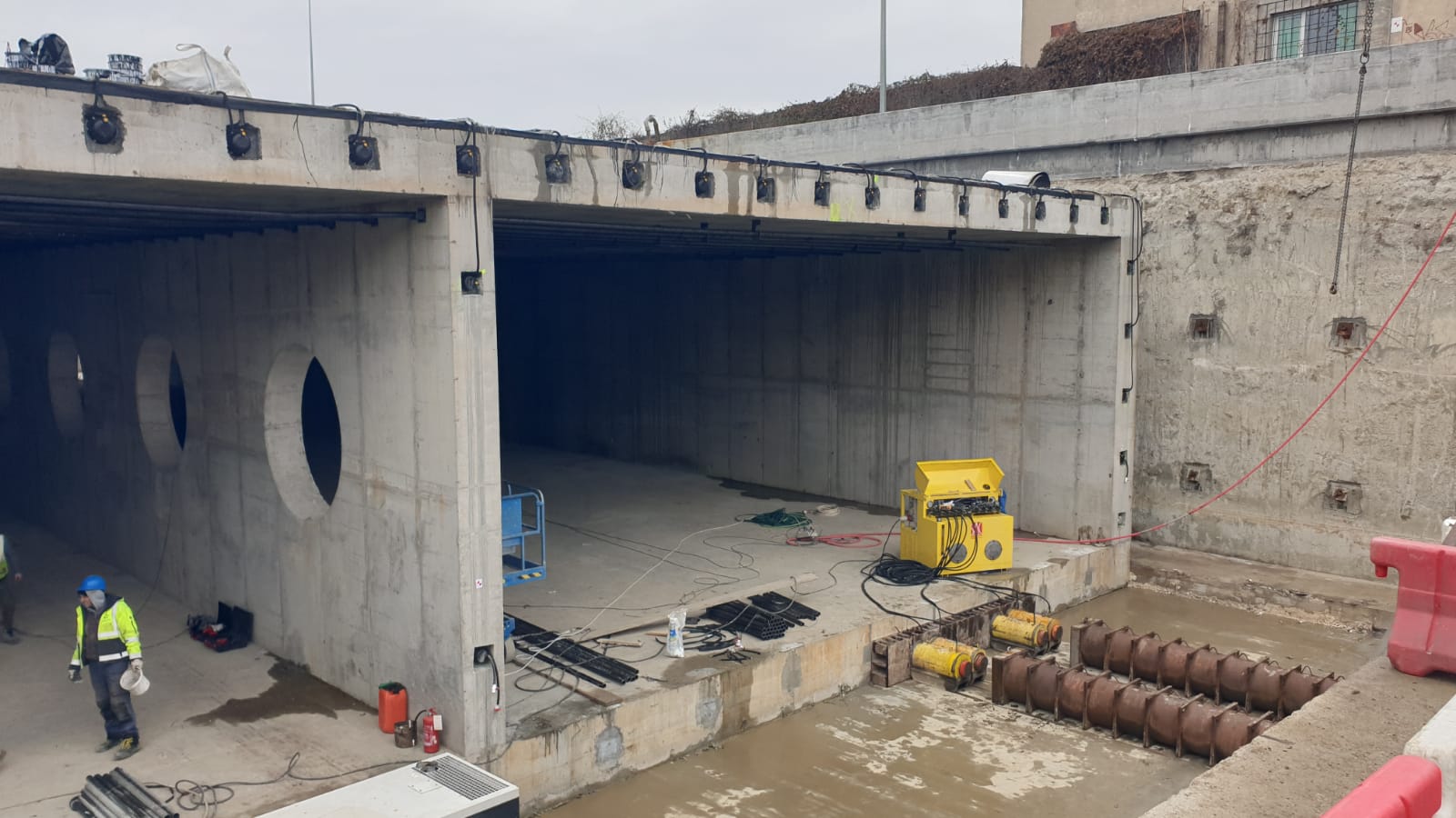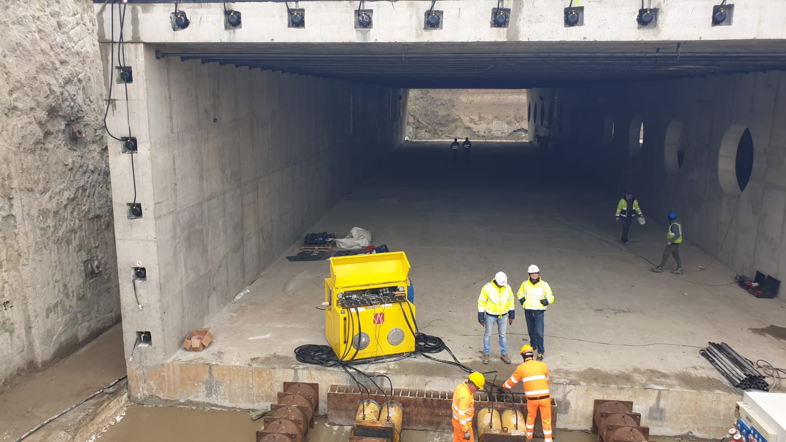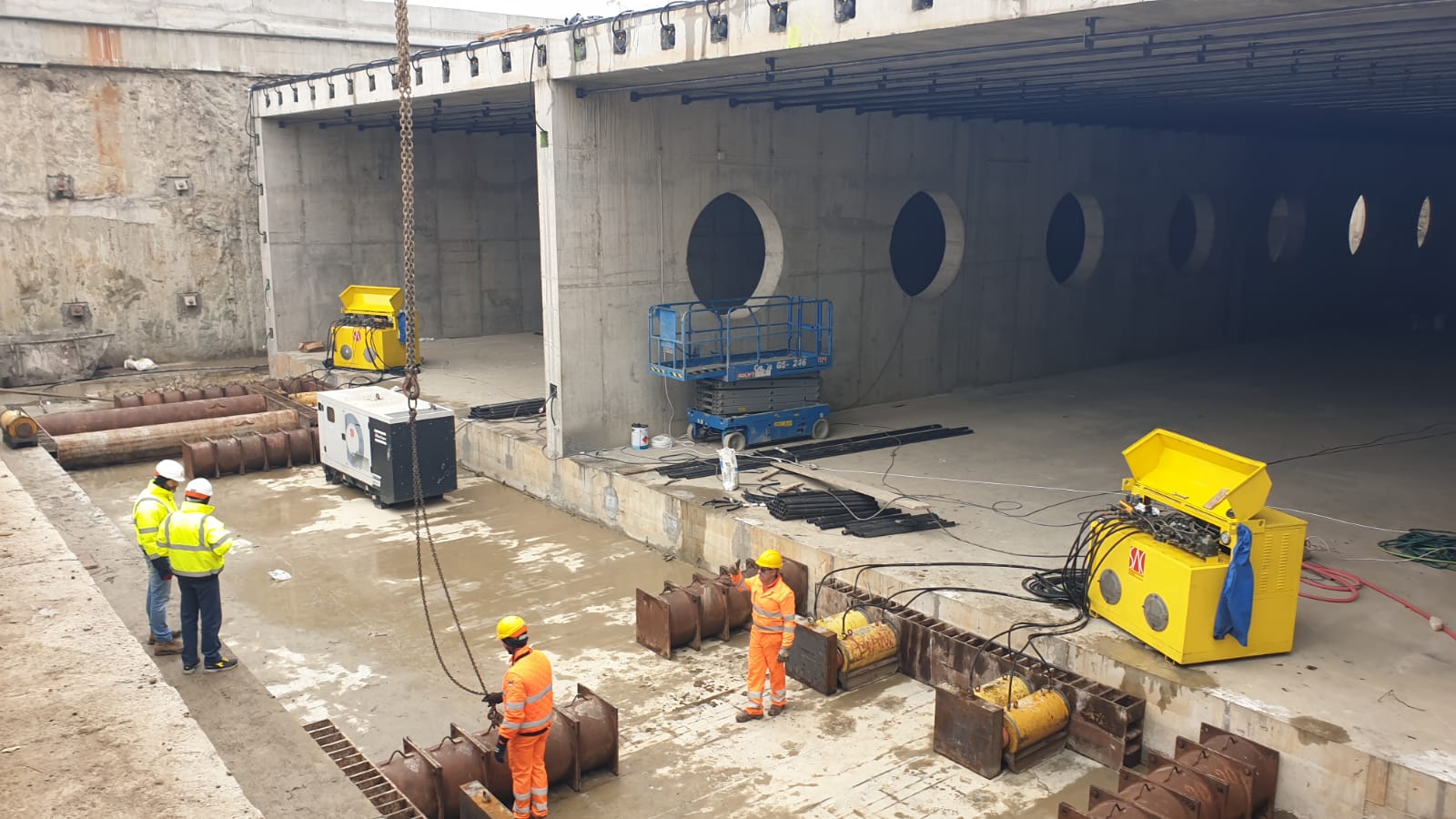 “Chesonul acesta de beton s-a construit aici și acum vor fi împinse în față pe sub linie de cale ferată. Practic se pune niște prese, au un avansa de 50 centimetri, împinge 50 centimetri, iar se închide, se bagă un distanțier de 50, iar împinge și când a avansat 4 – 5 metri, se scoate distanțierele mici și se pune un distanțier lung”, explică Luigi Pastorelli.