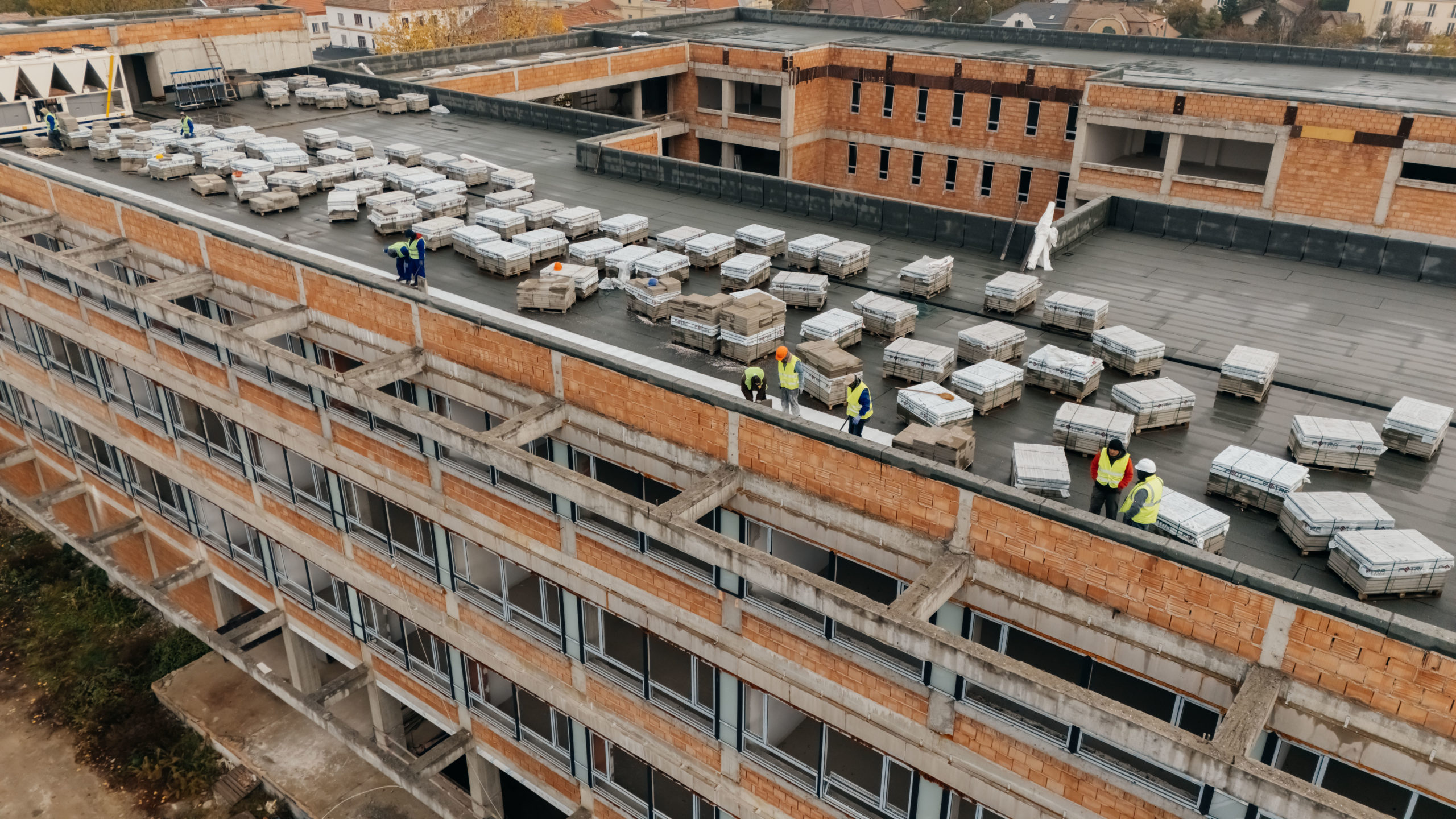 Echipele constructorului au reluat lucrările la finisajele interioare, precum și la suprafața acoperișului, unde vor fi amplasate panouri fotovoltaice și panouri solare pentru încălzirea apei.