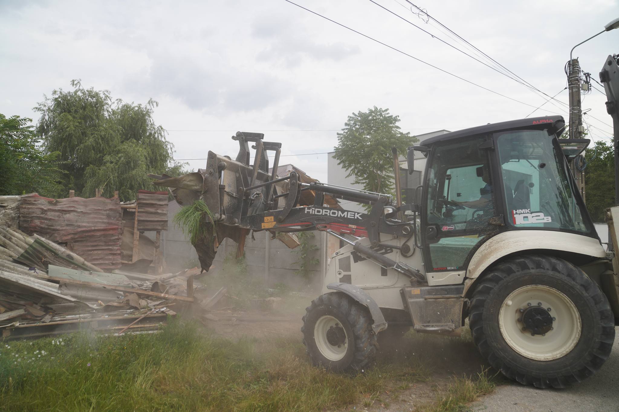 Mai multe construcții ilegale au fost demolate, astăzi, cu buldozerul în zona Blașcovici din Timișoara.