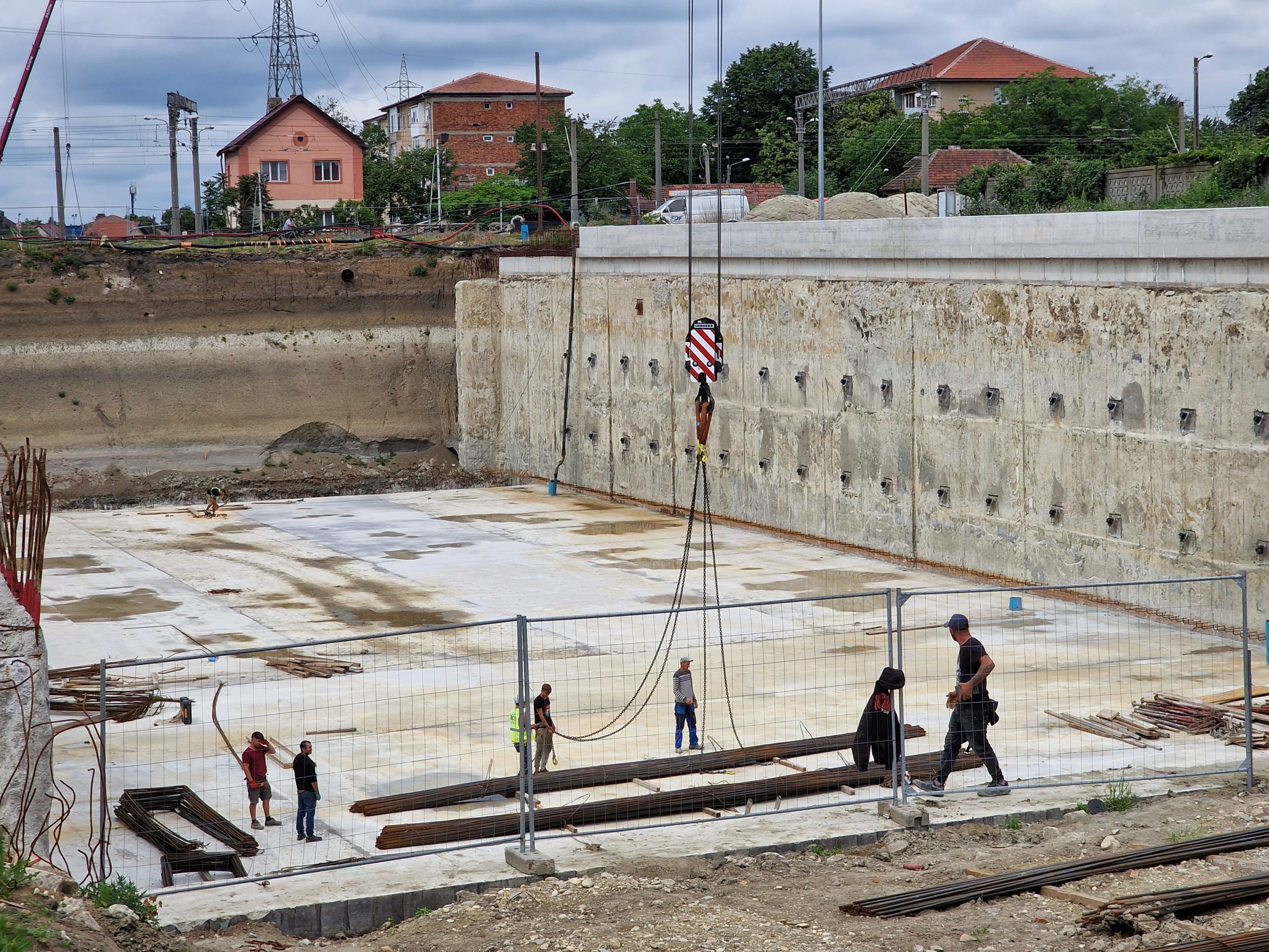 Construcția pasajului Solventul din Timișoara continuă cu lucrările de împingere a tunelului din beton pe sub liniile de cale ferată.
