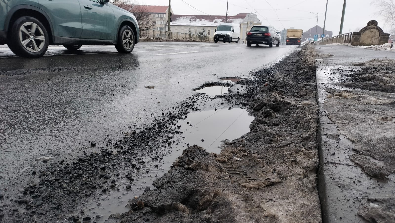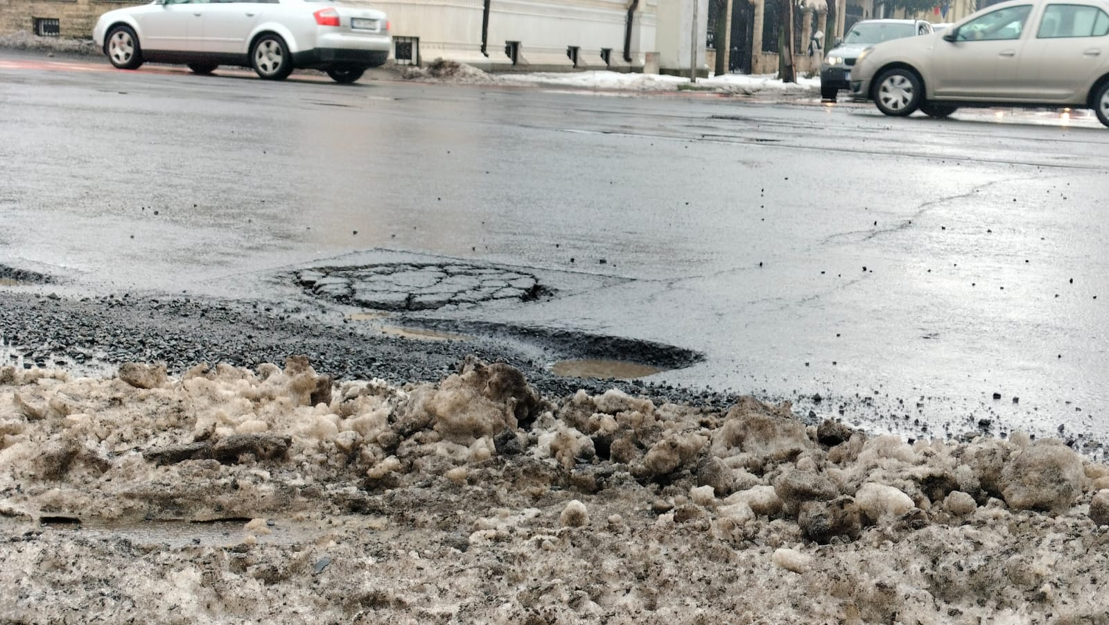 Gropi pe marile artere din Timișoara după topirea zăpezii