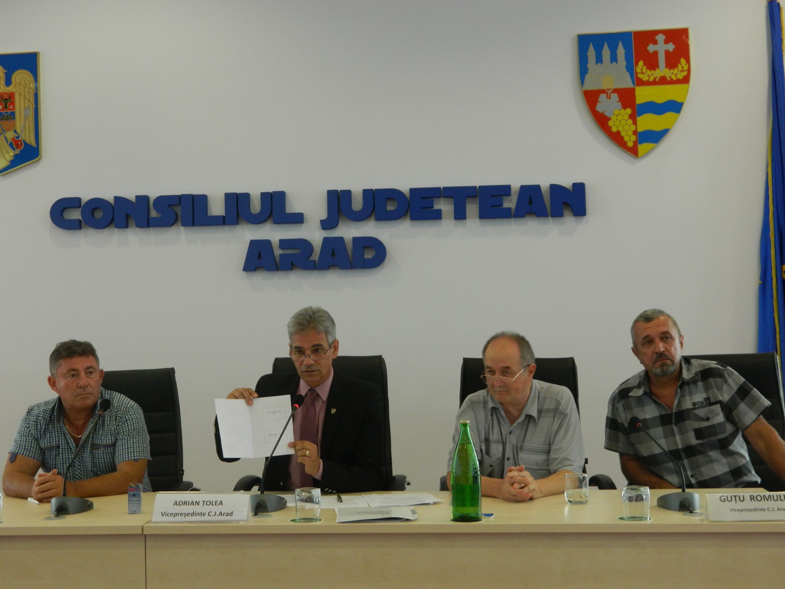 Noul preşedinte interimar al Consiliului Judeţean Arad este Adrian Ţolea, care a fost ales, sâmbătă dimineaţă, în şedinţă extraordinară, cu 20 de voturi pentru din 22.