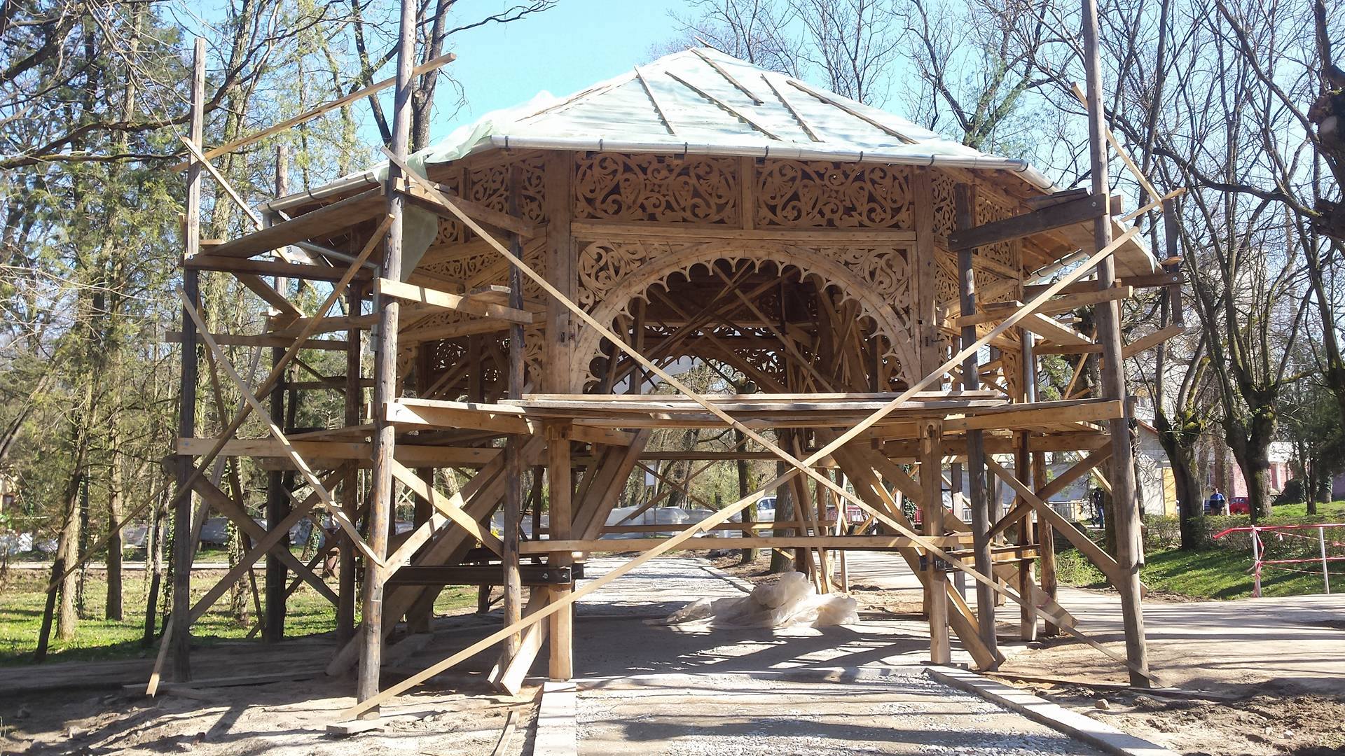 FOTO / Colonada din Buziaș a intrat în reparații. Este singurul monument ce se aseamănă cu obiective din Karlovy Vary sau Baden Baden