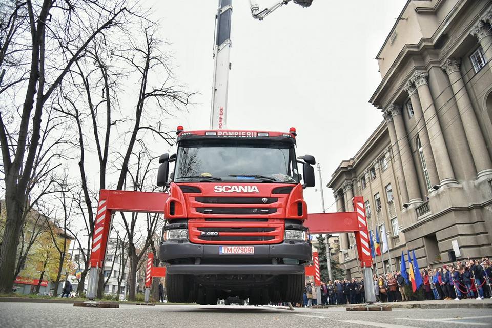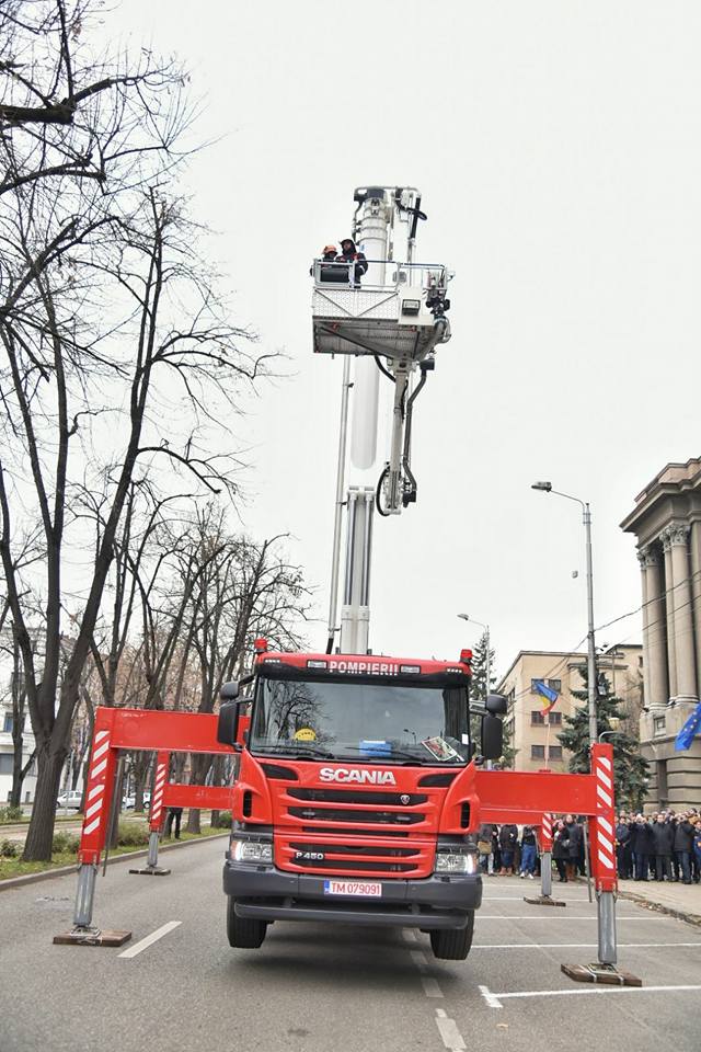 Pompierii timişeni vor putea desfăşura intervenţii la înălţime cu ajutorul unei autoplatforme speciale ce poate ajunge până la 72 de metri.
