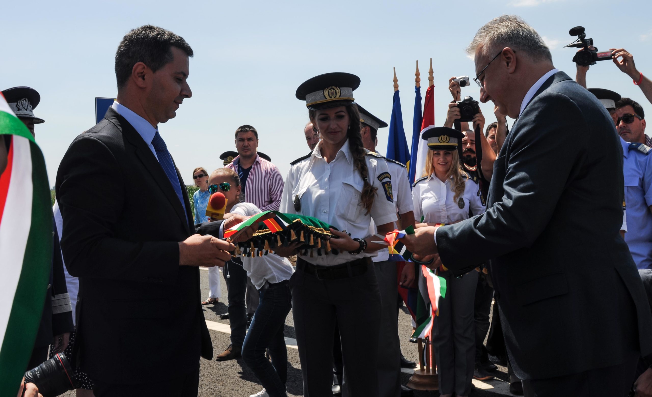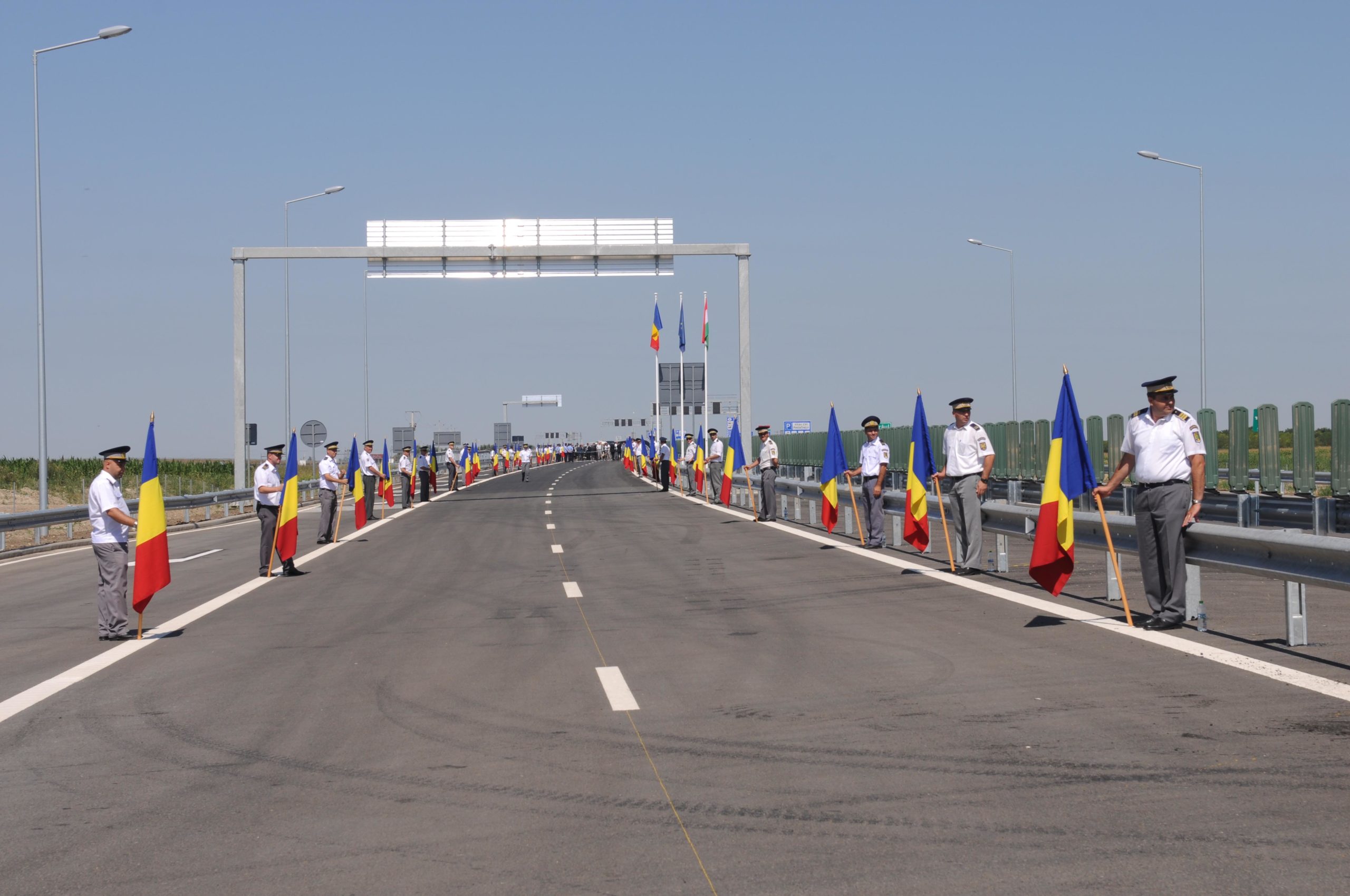 La eveniment a ajuns și premierul Victor Ponta care a arătat că, pentru prima dată în istorie, România este conectată prin autostradă cu Uniunea Europeană. Deplasându-se cu ajutorul cârjelor, în urma operației suferite în Turcia, șeful Executivului nu a putut tăia pangliga inaugurală. Oficiile au fost asidurate de Marius Nica, ministrul Fondurilor Europene, şi Semjen Zsolt, vicepremier al guvernului maghiar.