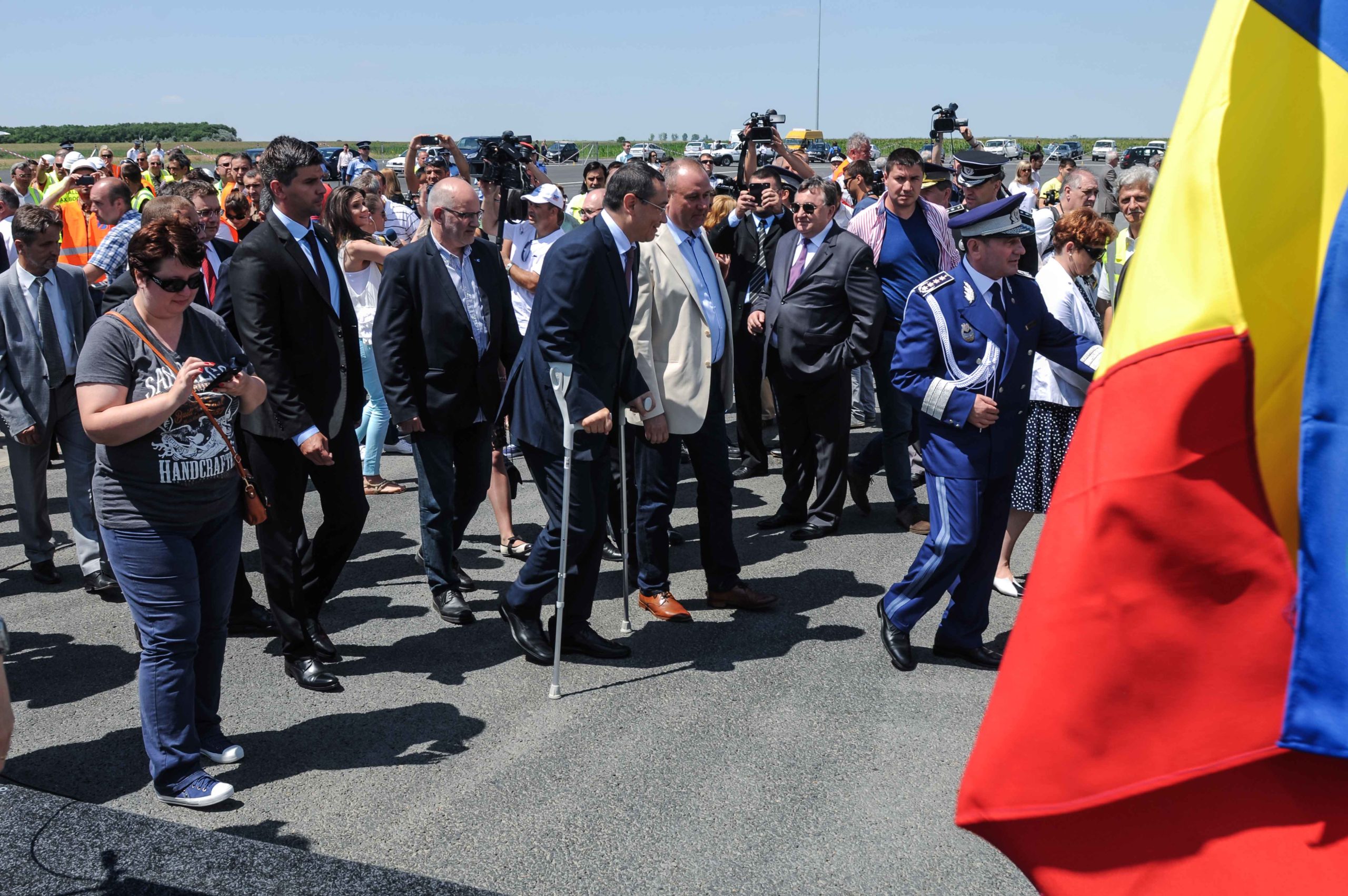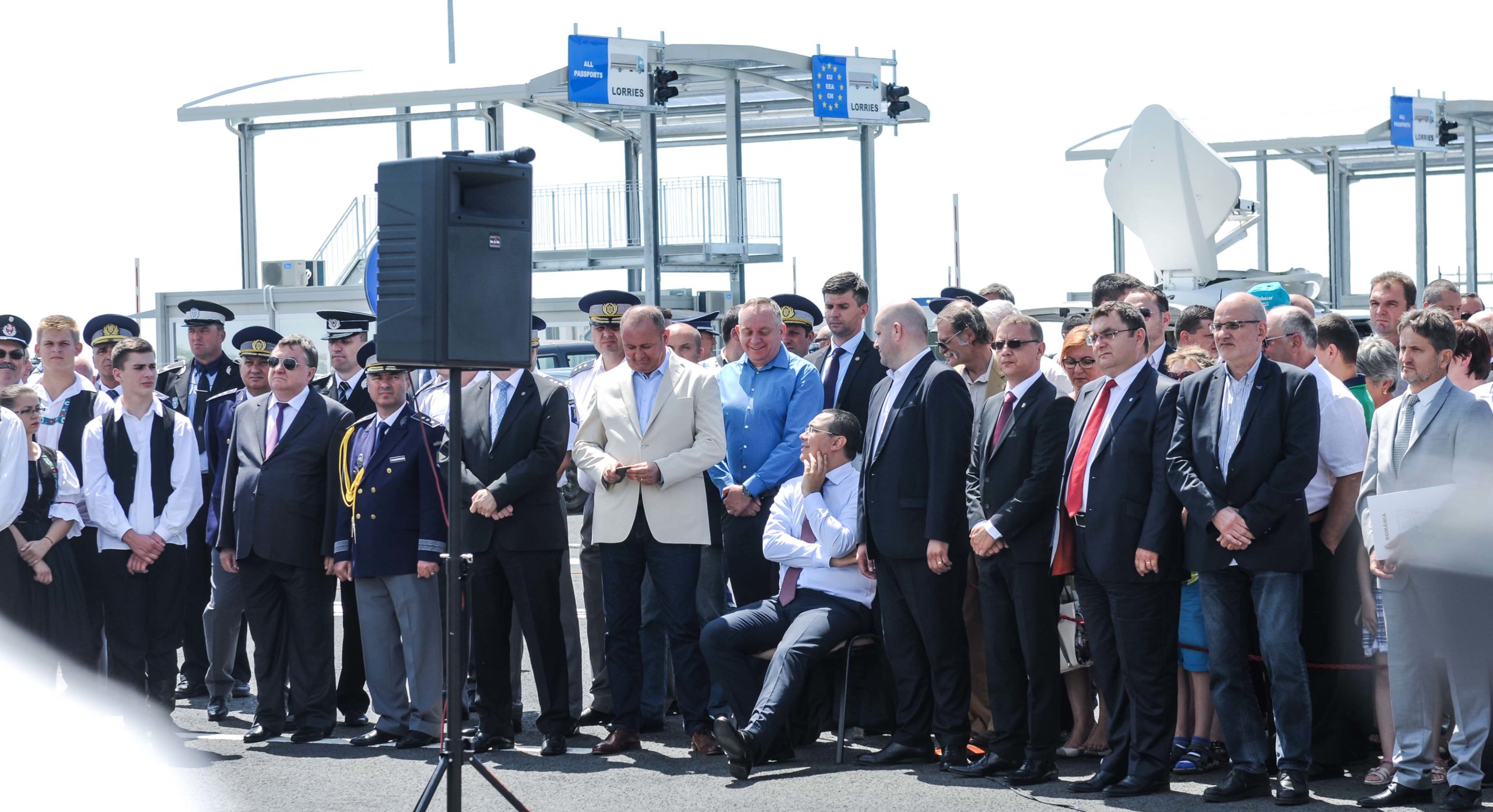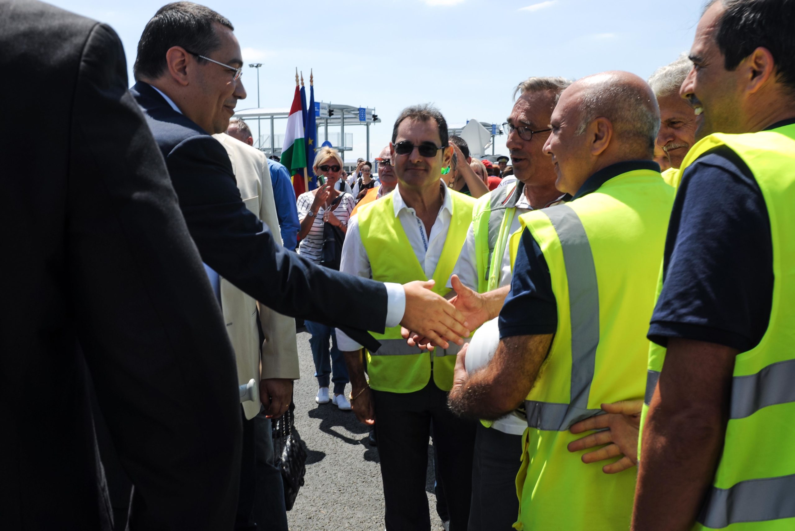FOTO / Românii pot merge în Ungaria direct pe autostradă. Prmierul Ponta a venit în cârje la deschiderea vămii Nădlac II