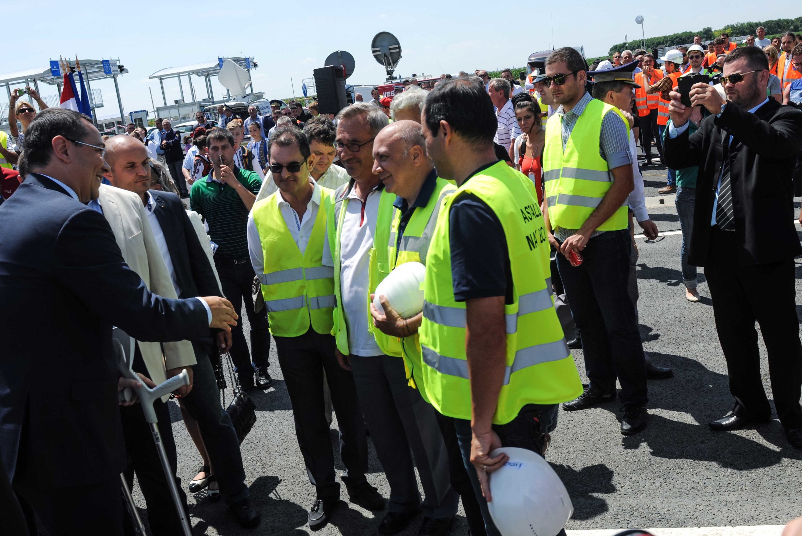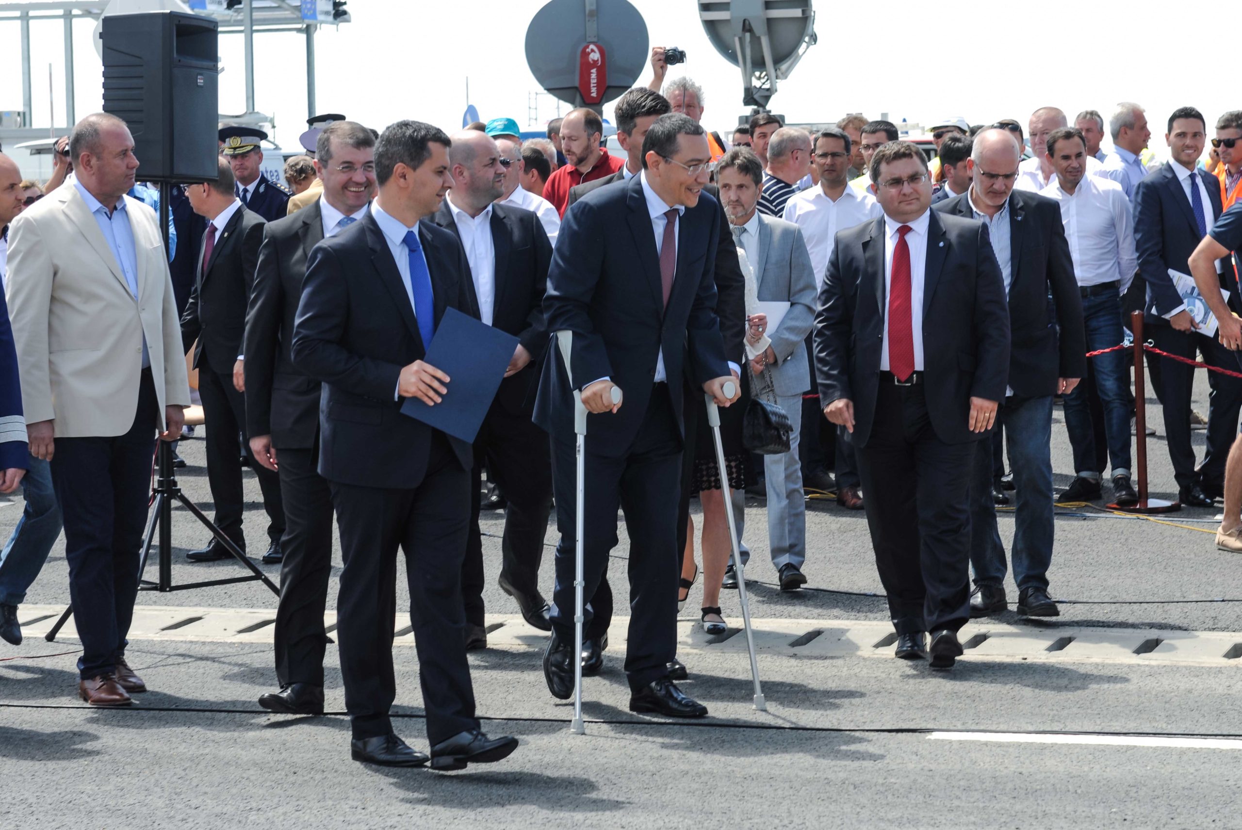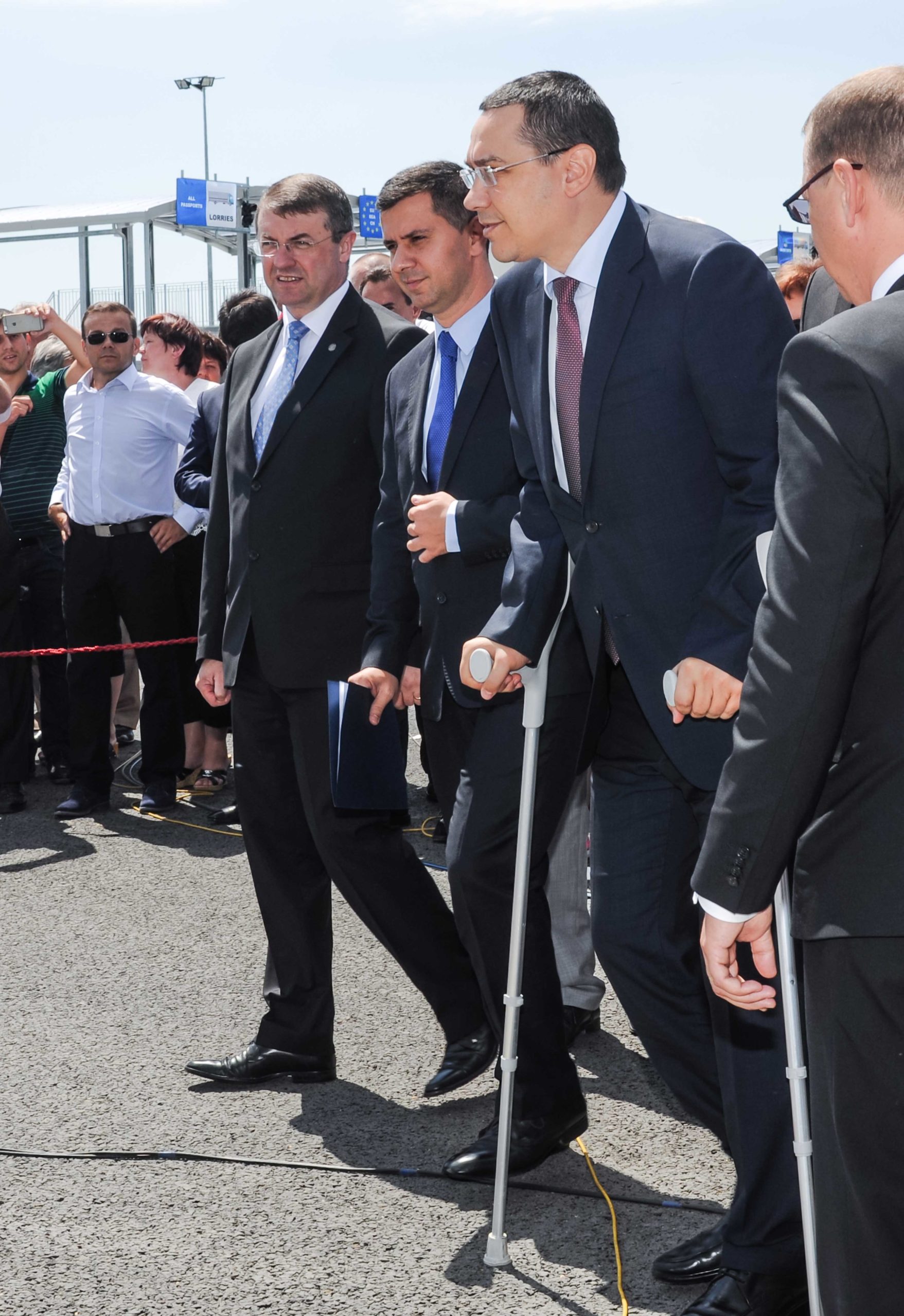 FOTO / Românii pot merge în Ungaria direct pe autostradă. Prmierul Ponta a venit în cârje la deschiderea vămii Nădlac II