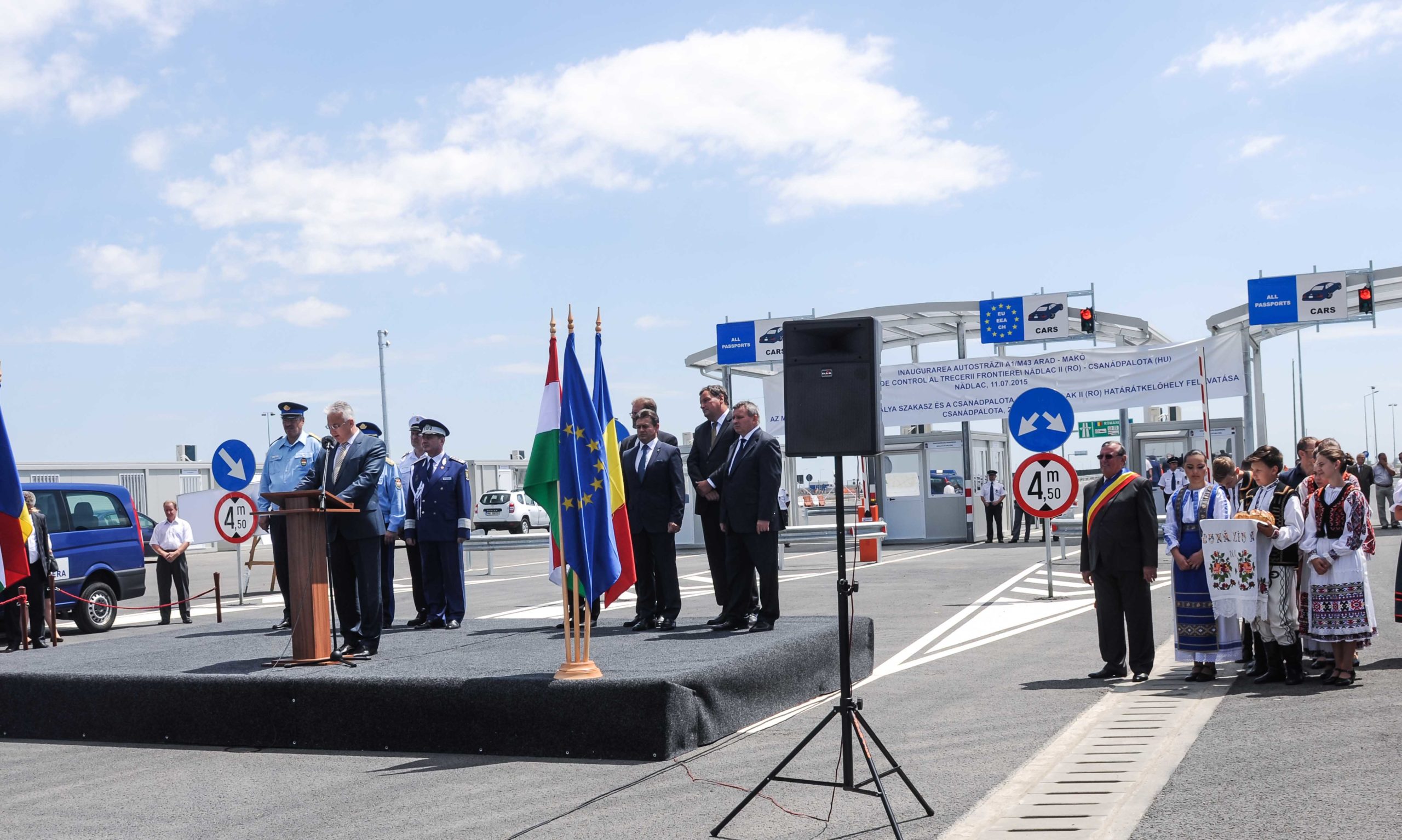 Punctul de Trecere a Frontierei Nădlac II – Csanadpalota, Ungaria, singurul care face legătura cu rețeaua de autostrăzi a Europei, a fost deschis oficial astăzi. Cu aceeași ocazie a fost inaugurată conexiunea între autostrăzile A1 și M43 din Ungaria.