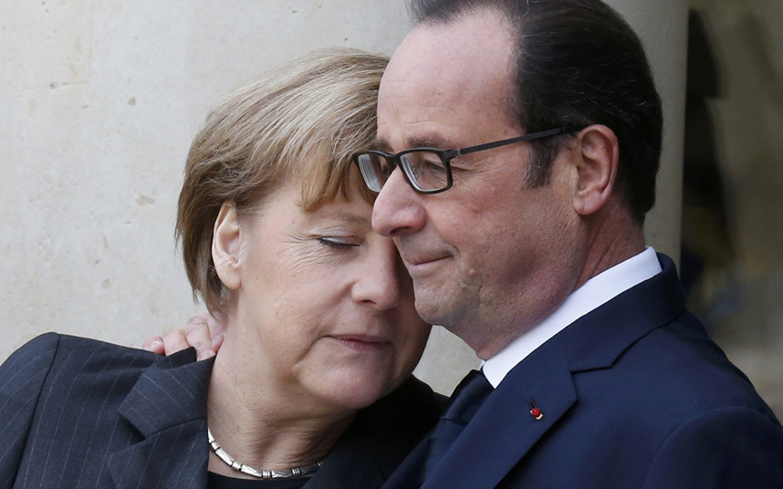 Liderii străini, printre care cancelarul american Angela Merkel sau preşedintele ucrainean Petro Poroşenko, care au defilat şi s-au ţinut de braţ alături de François Hollande, au fost aplaudaţi de zeci de mii de oameni de pe străzi, dar şi de persoane aflate la ferestre care urmăreau marşul.