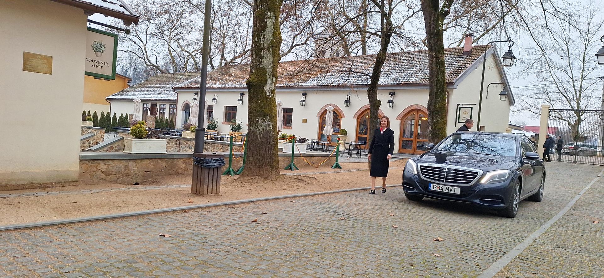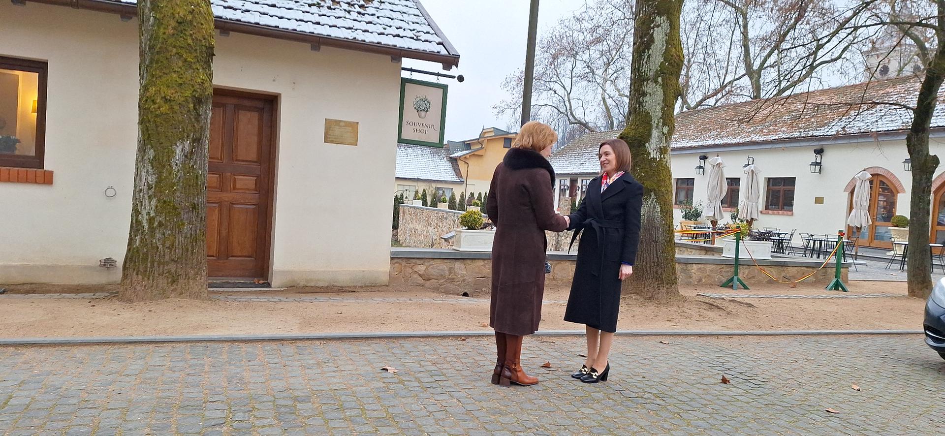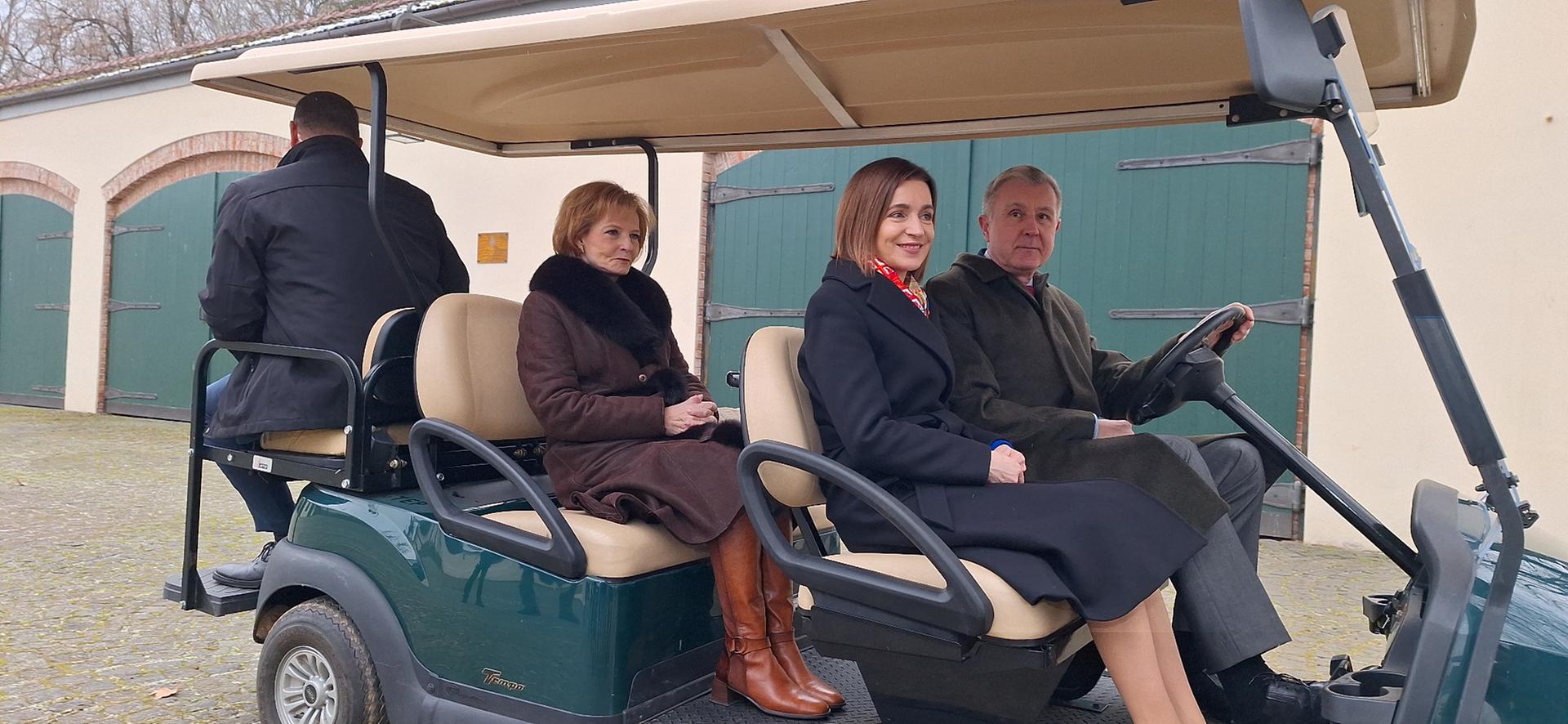 Maia Sandu a fost întâmpinată în Satul Regal, după care a fost invitată să ia dejunul în castel.