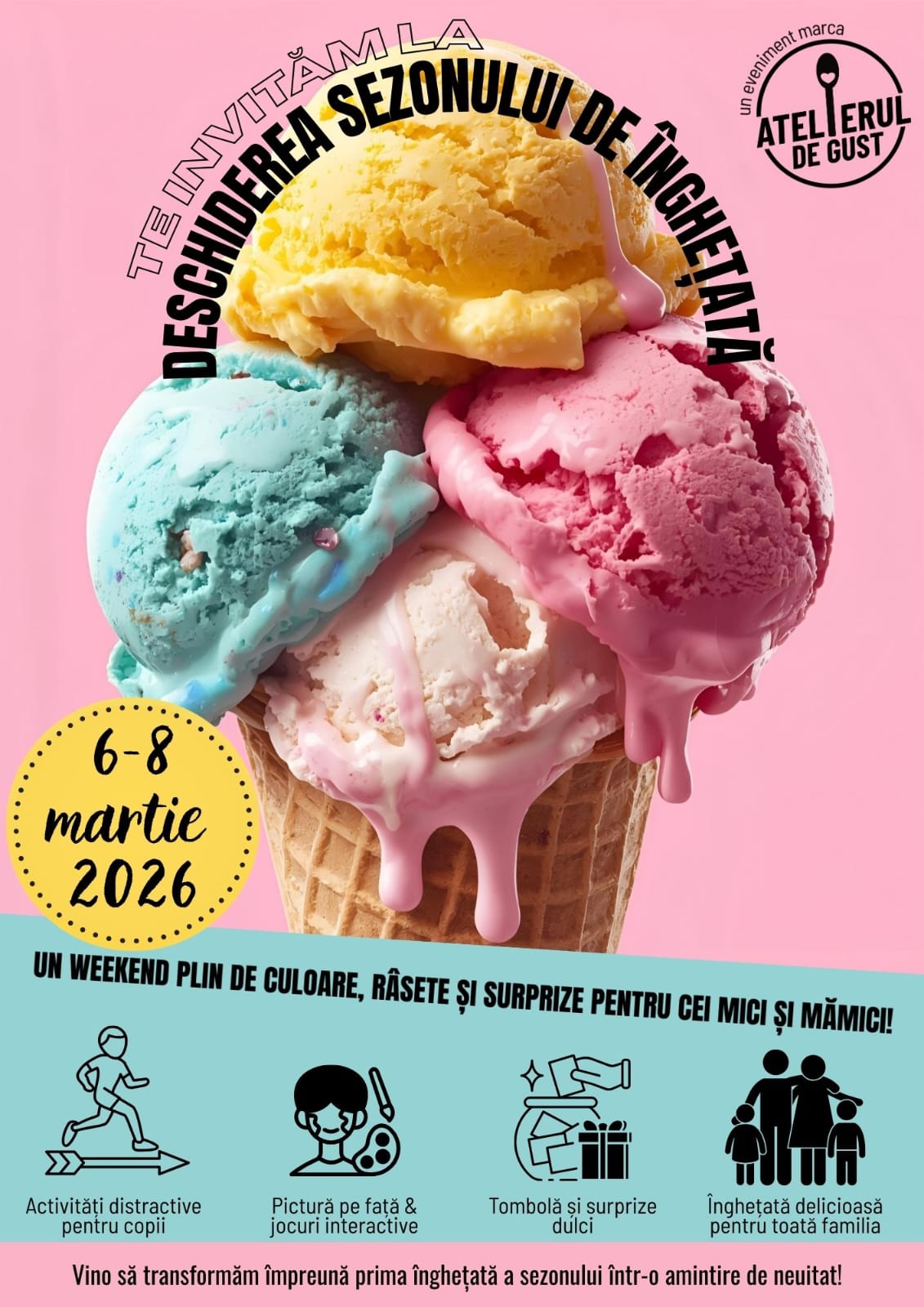 În weekendul 6–8 martie 2026, Atelierul de Gust din comuna timișeană Voiteg deschide sezonul de înghețată artizanală printr-un eveniment plin de culoare, voie bună și, bineînțeles, multă înghețată. Programul include activități și jocuri distractive pentru copii, o tombolă specială, dar și surprize dedicate zilei de 8 Martie.