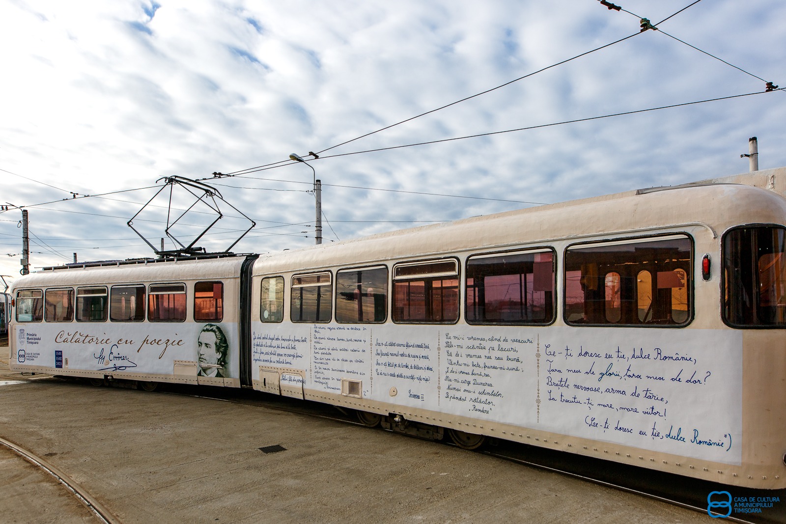 Tramvaiul 3449 a fost însuflețit cu fragmente din poezii eminesciene, scrise de mână, de copii de la câteva școli din oraș: Liceul Teoretic „Jean-Louis Calderon”, Colegiul Național Bănățean, Școala Gimnazială Nr. 30, Școala Gimnazială Nr. 19 „Avram Iancu”, Liceul Teoretic „Wendy Kids” și Școala Gimnazială Nr. 24.
