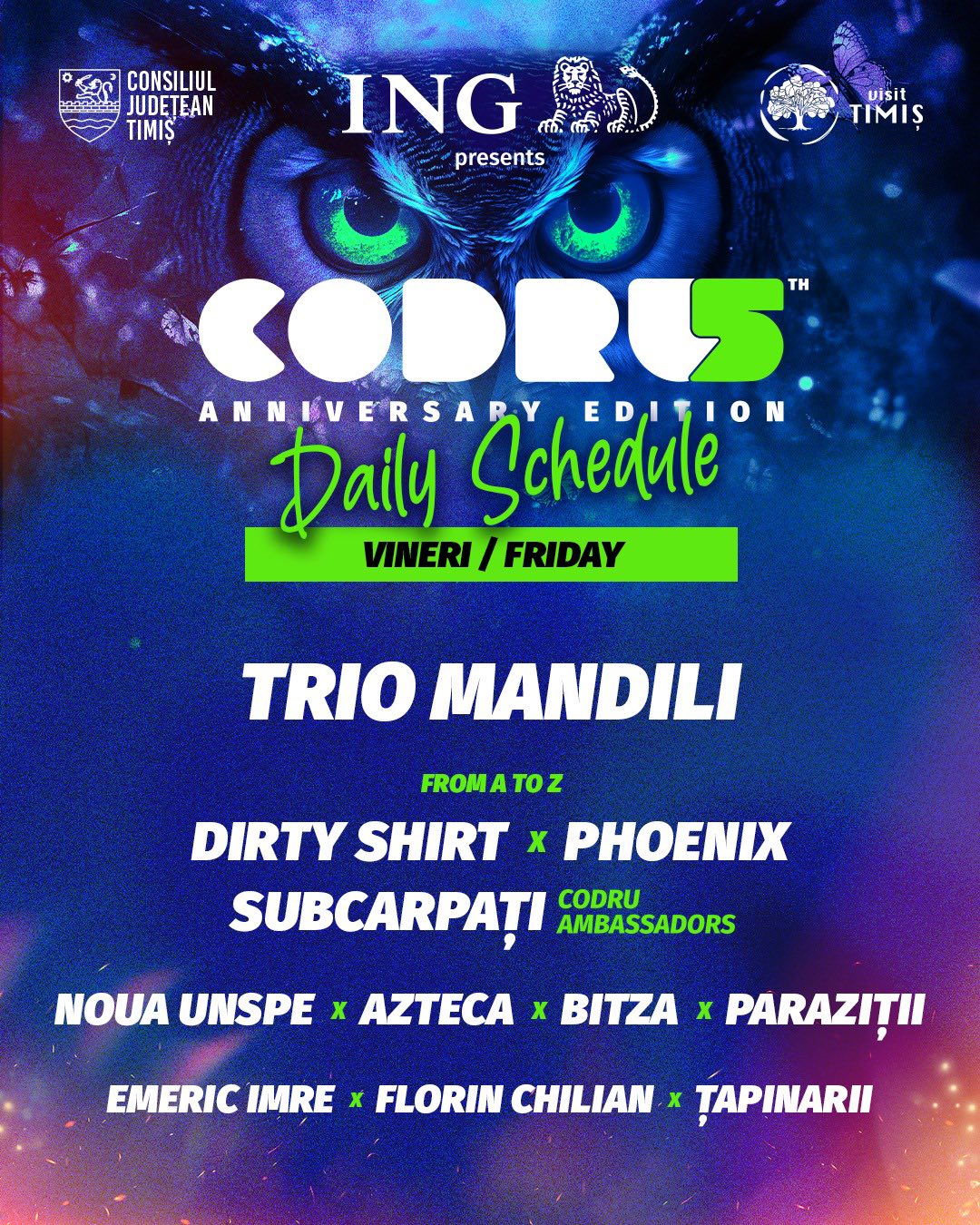 CODRU Festival își deschide porțile vineri, 29 august 2025, de la ora 16:00. Ediția aniversară din acest an, CODRU5, aduce trei zile de muzică live, artă, experiențe unice și zeci de artiști la Pădurea Verde din Timișoara.