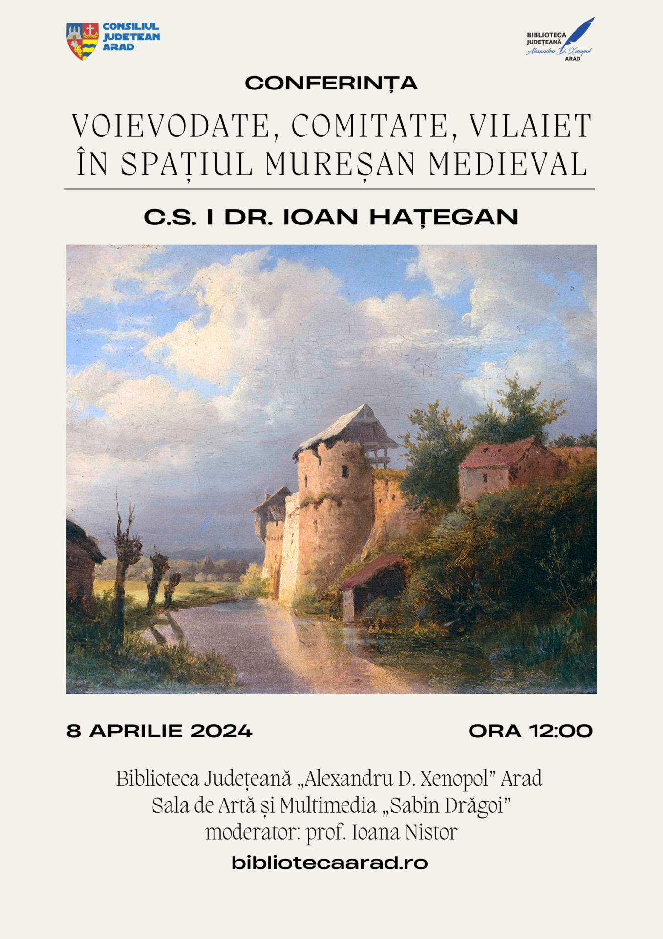Conferința „Voievodate, comitate, vilaiet în spațiul mureșan medieval”, organizată de Biblioteca Județeană „Alexandru D. Xenopol” Arad și susținută de C.S. I dr. Ioan Hațegan, Academia Română, Institutul de Cercetări Socio-Umane „Titu Maiorescu” Timişoara, promite să fie o incursiune fascinantă în istoria și structura administrativă a regiunii străbătută de râul Mureș, în perioada medievală.
