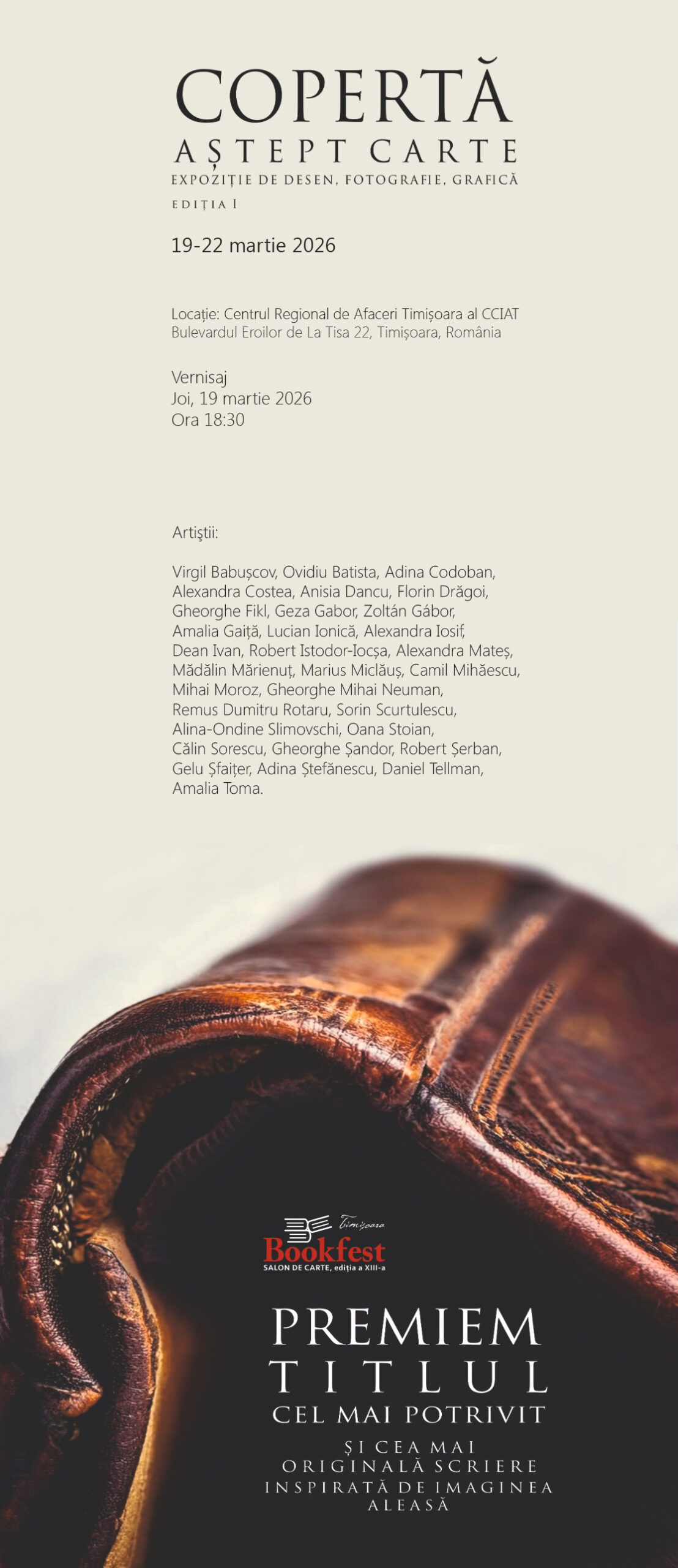 În cadrul Salonului de carte Bookfest de la Timișoara, desfășurat între 19 – 22 mai 2026 la Centrul Regional de Afaceri (CRAFT), va avea loc expoziția „Copertă, aștept carte”.