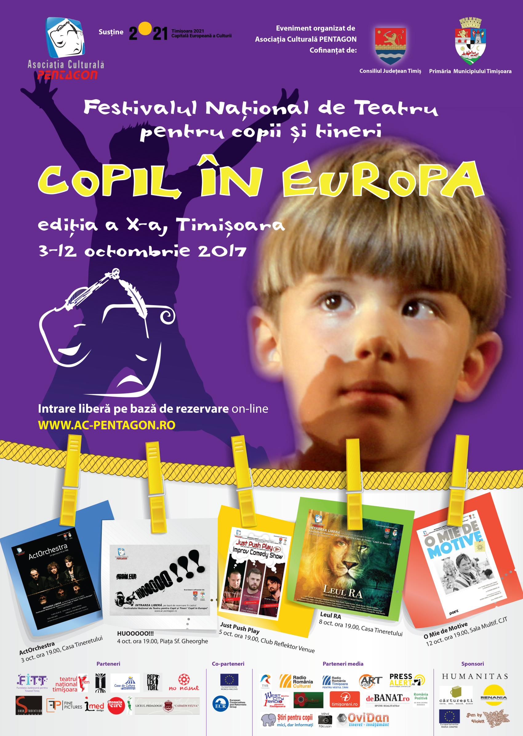 Cea de a X-a ediție a Festivalului de Teatru pentru Copii și Tineri „Copil în Europa” va avea loc la Timișoara în perioada 3 – 12 octombrie 2017.