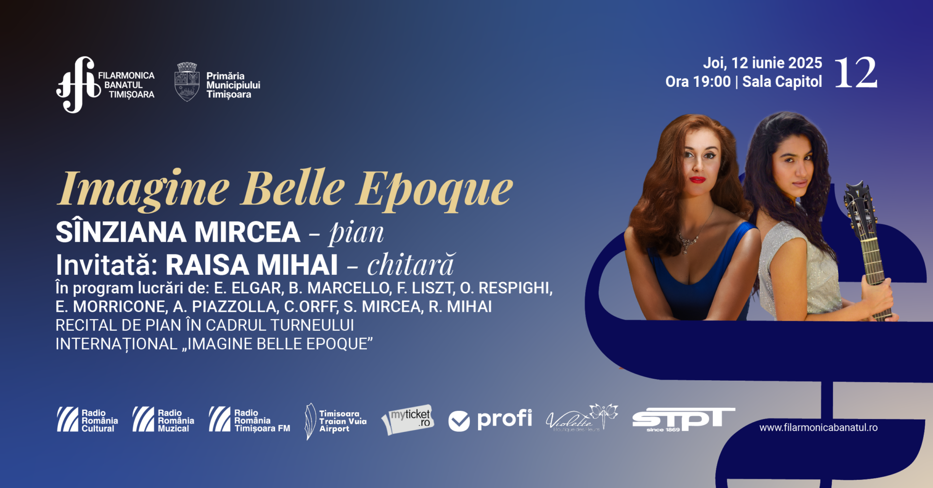 Una dintre cele mai înfloritoare perioade din punct de vedere artistic este reimaginată de talentata pianistă Sînziana Mircea. Ca parte a turneului său internațional intitulat „Imagine Belle Epoque”, artista va susține un recital joi, 12 iunie 2025, de la ora 19:00, la Sala Capitol a Filarmonicii Banatul Timișoara.