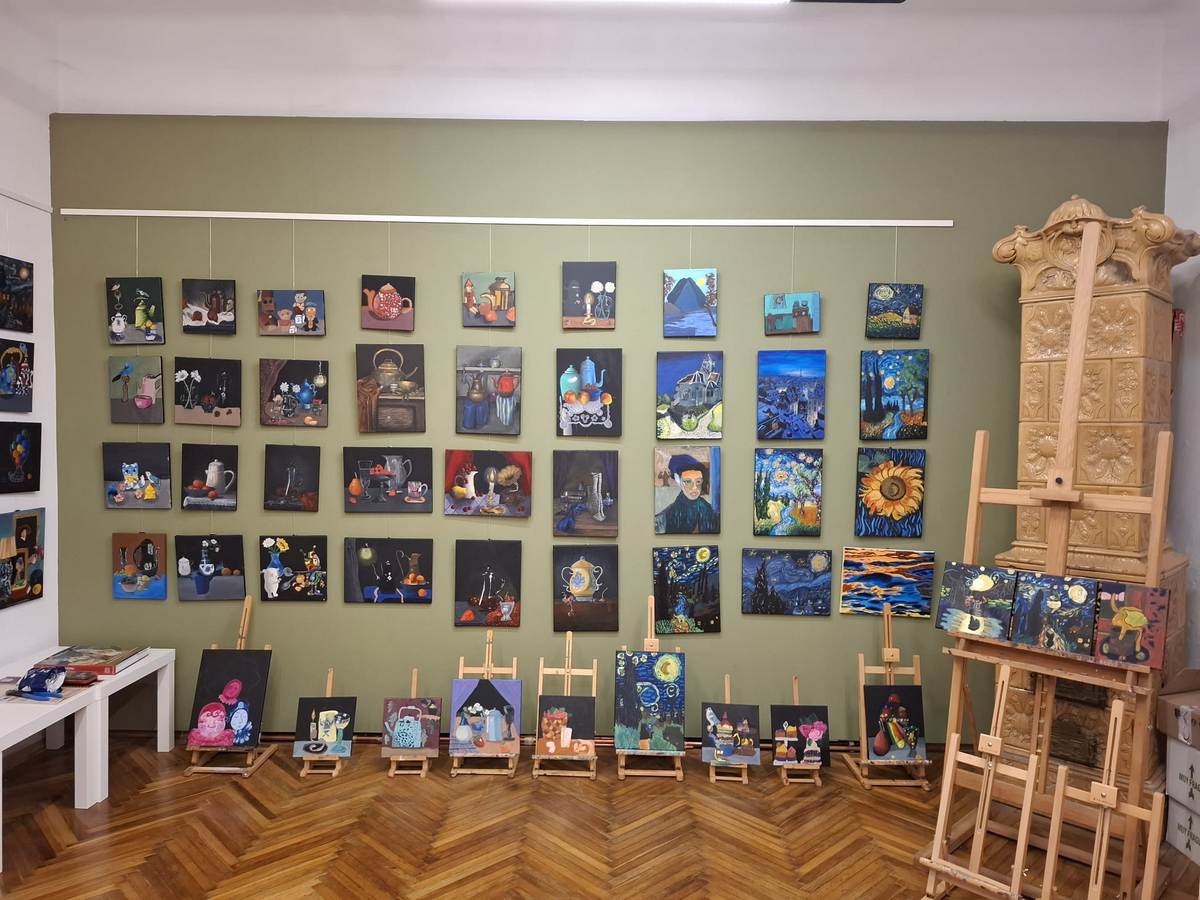 Expoziția de la Galeria din Curte reunește pânze realizate de copii reprezentând naturi statice și nocturne inspirate de operele marilor artiști.