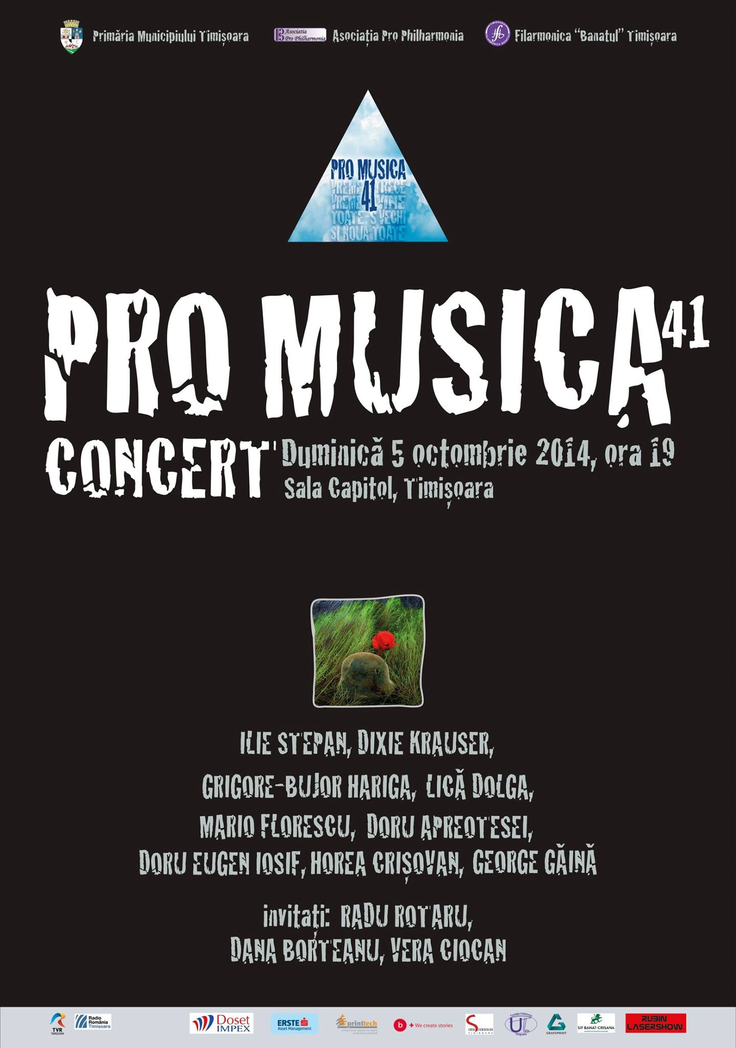 5 octombrie 2014 @ 19:00 – 23:20 – Pro Musica, un grup de legendă a muzicii rock din România, revine pe scenă după 21 de ani! Concertul – eveniment „Pro Musica 41” va avea loc la Sala Capitol a Filarmonicii „Banatul” din Timişoara duminică, 5 octombrie, de la ora 19.00. Motto-ul concertului este „Vreme trece, vreme vine … toate-s vechi şi nouă toate”, […]