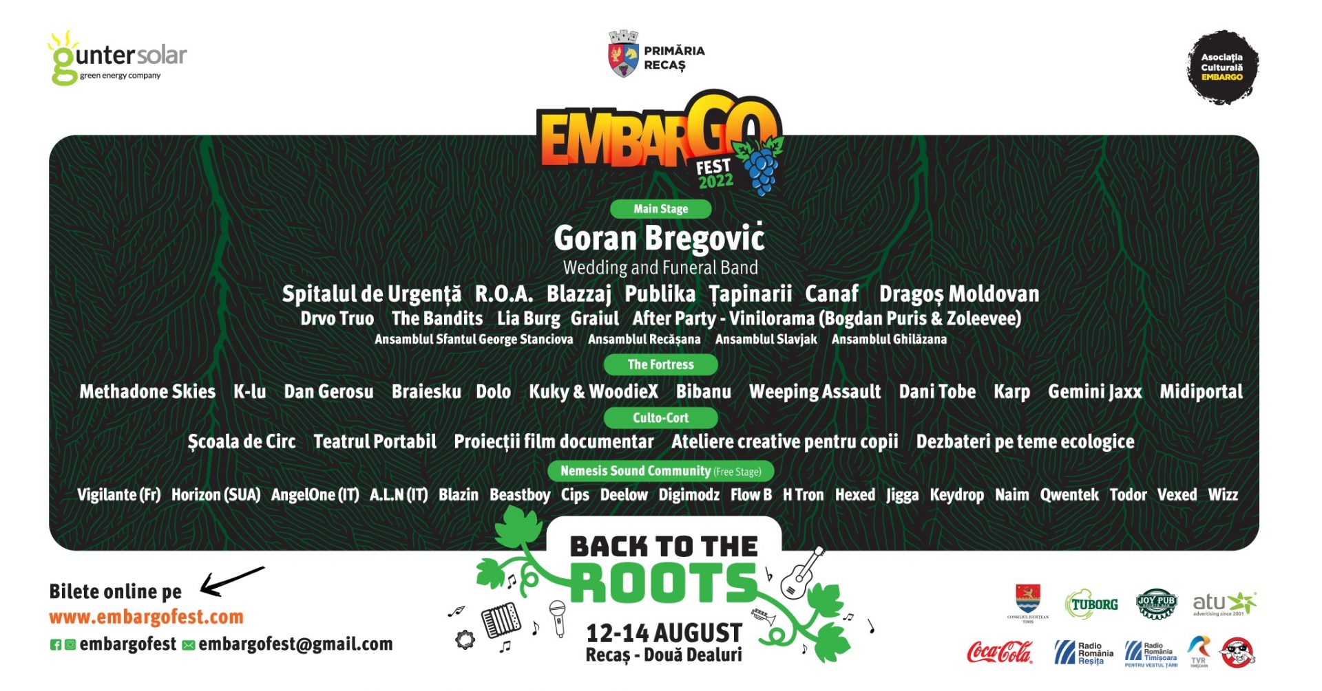 Cea de-a treia ediție a Embargo Fest va avea loc în perioada 12-14 august 2022, în orașul Recaș, locație Două Dealuri. Festivalul va aduce în fața publicului peste 50 de artiști din România, Serbia, Bulgaria și Ungaria. Embargo Fest este singurul festival de amploare care promovează minoritățile și multiculturalitatea specifică zonei Banat, iar alături de concerte, vor exista o sumedenie de activități: proiecţii de film, spectacolele de teatru pentru copii şi adulţi, ateliere de circ, dezbateri pe teme ecologice, zonă de distracţii pentru copii, târg de produse bio și alte activări ale sponsorilor și partenerilor.