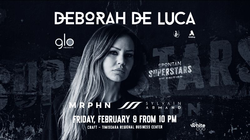 Seria Spontan Superstars aduce în acest an, în România, artiști din diferite genuri muzicale. Iar începutul este dedicat iubitorilor de techno. Deborah de Luca, diva techno-ului, revine în România cu un show electrizant, care te va pune în mișcare vineri seară. Special Guests: Sylvain Armand, MRPHN.