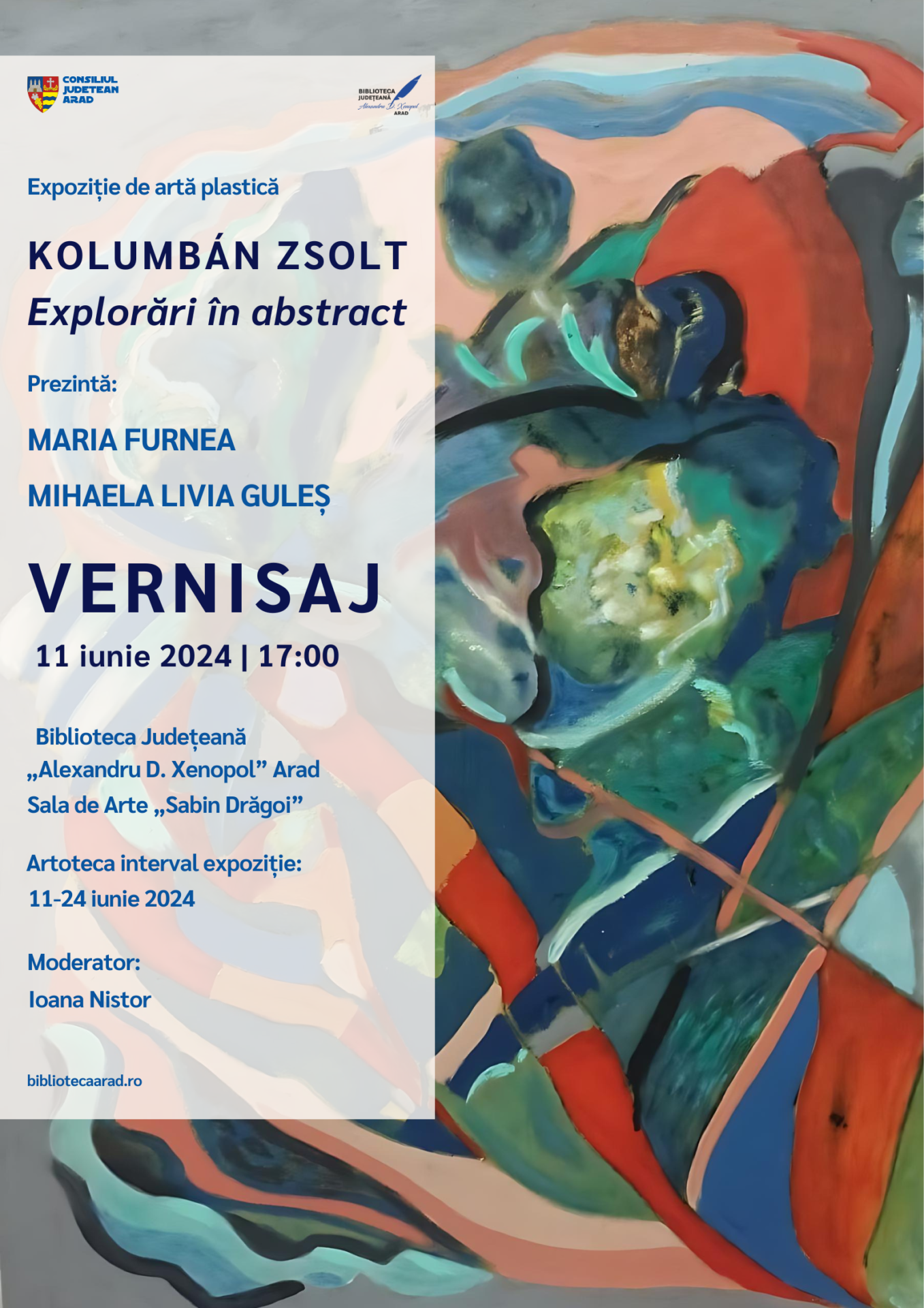 Marți, 11 iunie 2024, începând cu ora 17:00, Biblioteca Județeană „Alexandru D. Xenopol” organizează vernisajul expoziției de pictură „Explorări în abstract” a artistului plastic Kolumbán Zsolt.