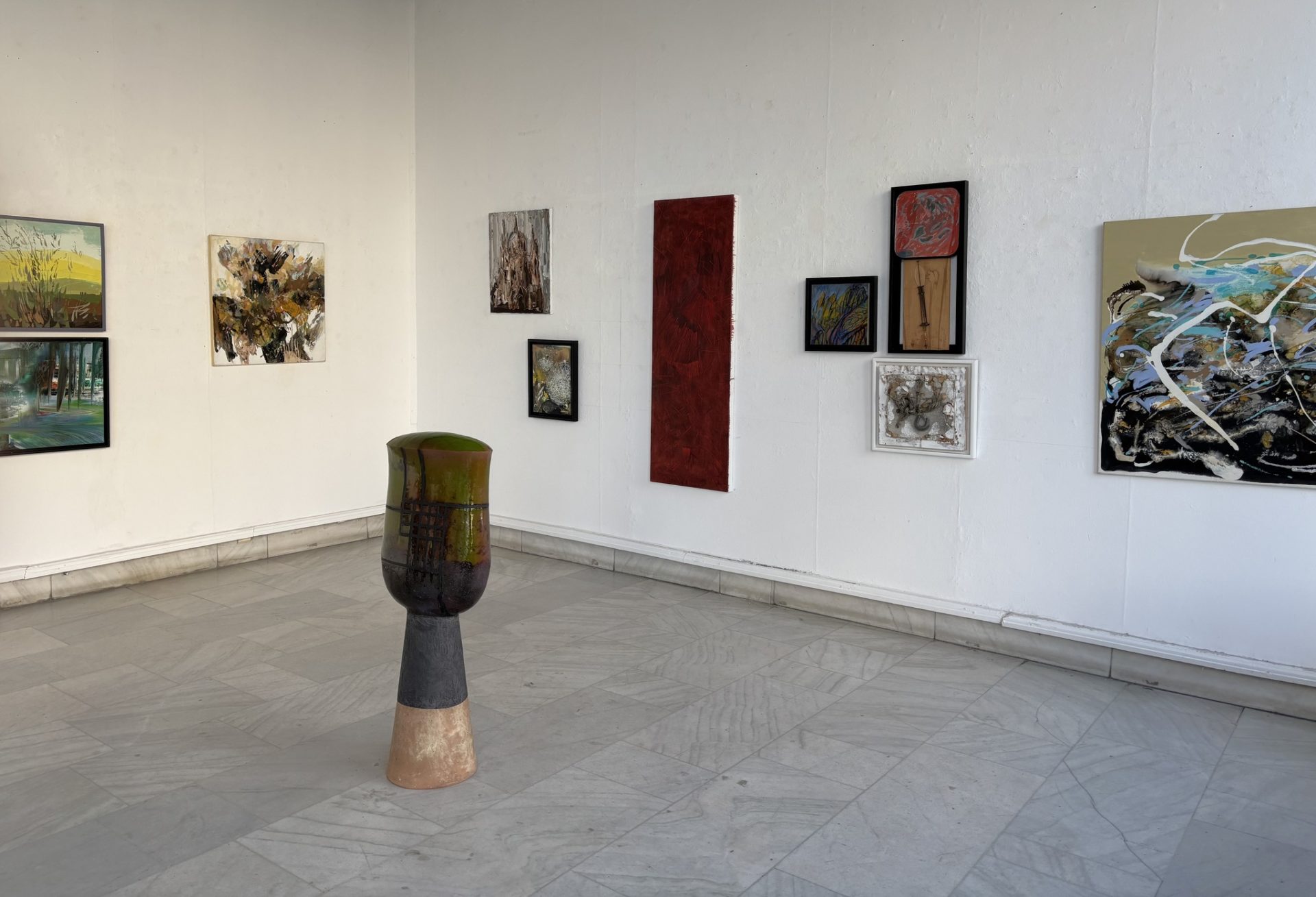 Expoziția reunește 44 de lucrări de pictură, grafică, ceramică, sculptură, tehnică mixtă, instalații şi tapiserie semnate de 33 de artiști.