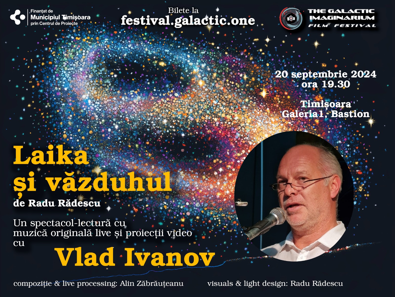 Spectacolul-lectură „Laika și văzduhul”, de Radu Rădescu, cu actorul Vlad Ivanov, visual & light design Radu Rădescu, compoziție & live processing Alin Zăbrăuțeanu (20 septembrie). Biletele sunt disponibile online.