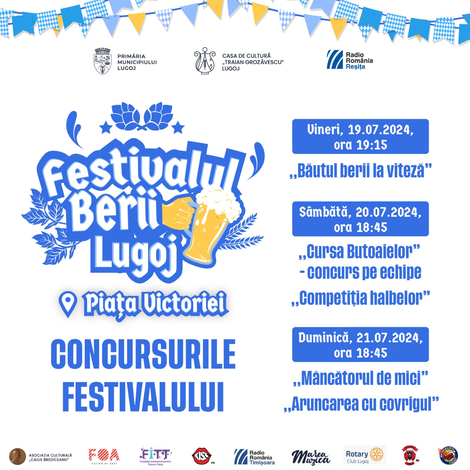 Lugojenii sunt așteptați, alături de familie și de prieteni, la Festivalul Berii, din 19 până în 21 iulie 2024, în Piața Victoriei din localitate. Vor fi trei zile de petreceri estivale cu muzică bună și cu multă bere rece.