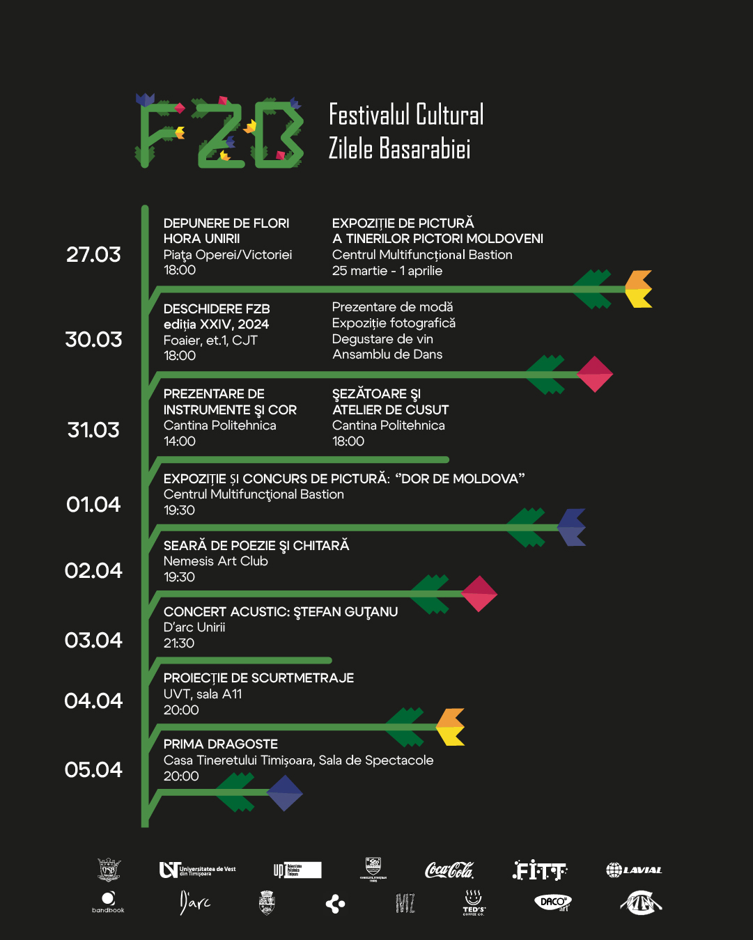 Organizația Studenților Basarabeni din Timișoara vă invită în perioada 30 martie – 6 aprilie 2024 la ediția a XXIV-a a Festivalului Cultural „Zilele Basarabiei”.