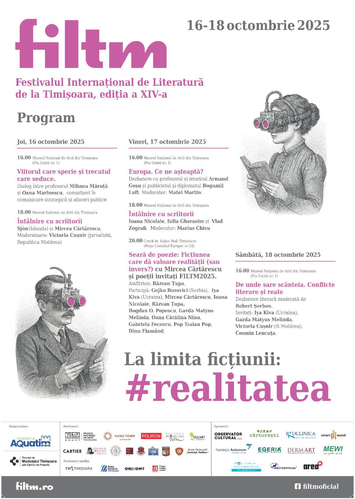 La limita ficțiunii #realitatea este tema celei de a XIV-a ediții a Festivalului Internațional de Literatură de la Timișoara (FILTM), care se desfășoară între 16– 18 octombrie 2025.