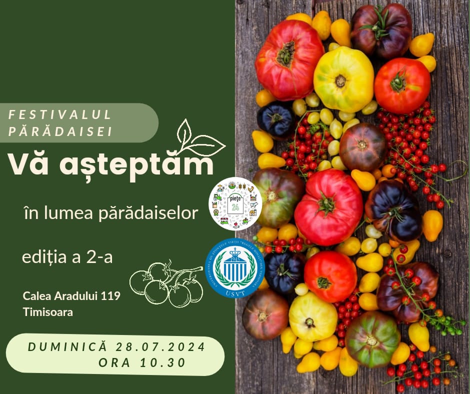 Festivalul Părădaiselor revine cu a doua ediție la Timișoara, la AgroVillage Banat, duminică, 28 iulie 2024, începând cu ora 10.30. Evenimentul aduce împreună iubitorii de roșii, producătorii locali și pasionații de gastronomie. Această sărbătoare anuală celebrează diversitatea soiurilor de roșii, gustul autentic și tradițiile legate de acest fruct atât de apreciat.