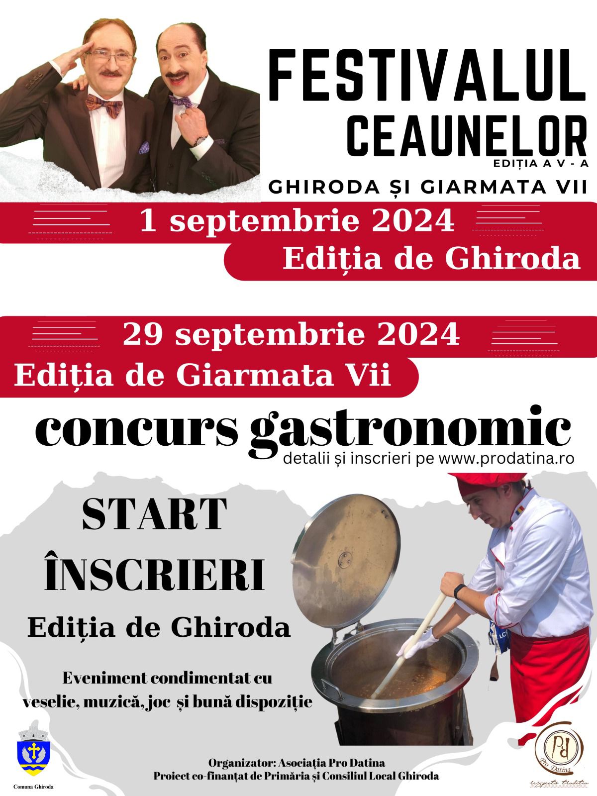 Înscrierea participanţilor se poate face pe site-ul prodatina.ro/festivalul-ceaunelor-2024. Timpul de lucru este de 5 ore, la ora 15:00 preparatele trebuie să fie finalizate și montate pentru jurizare.