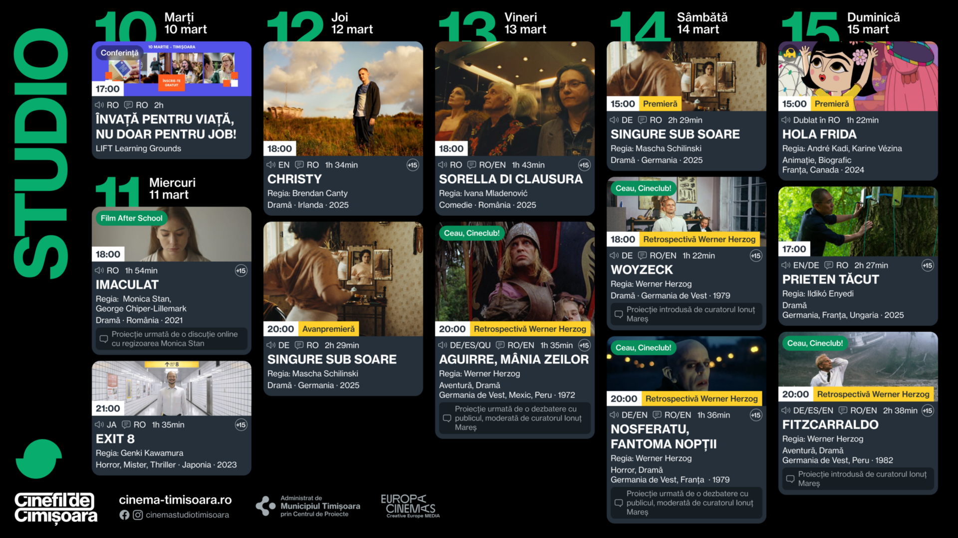 Programul săptămânii 11 – 15 martie la Cinema Studio