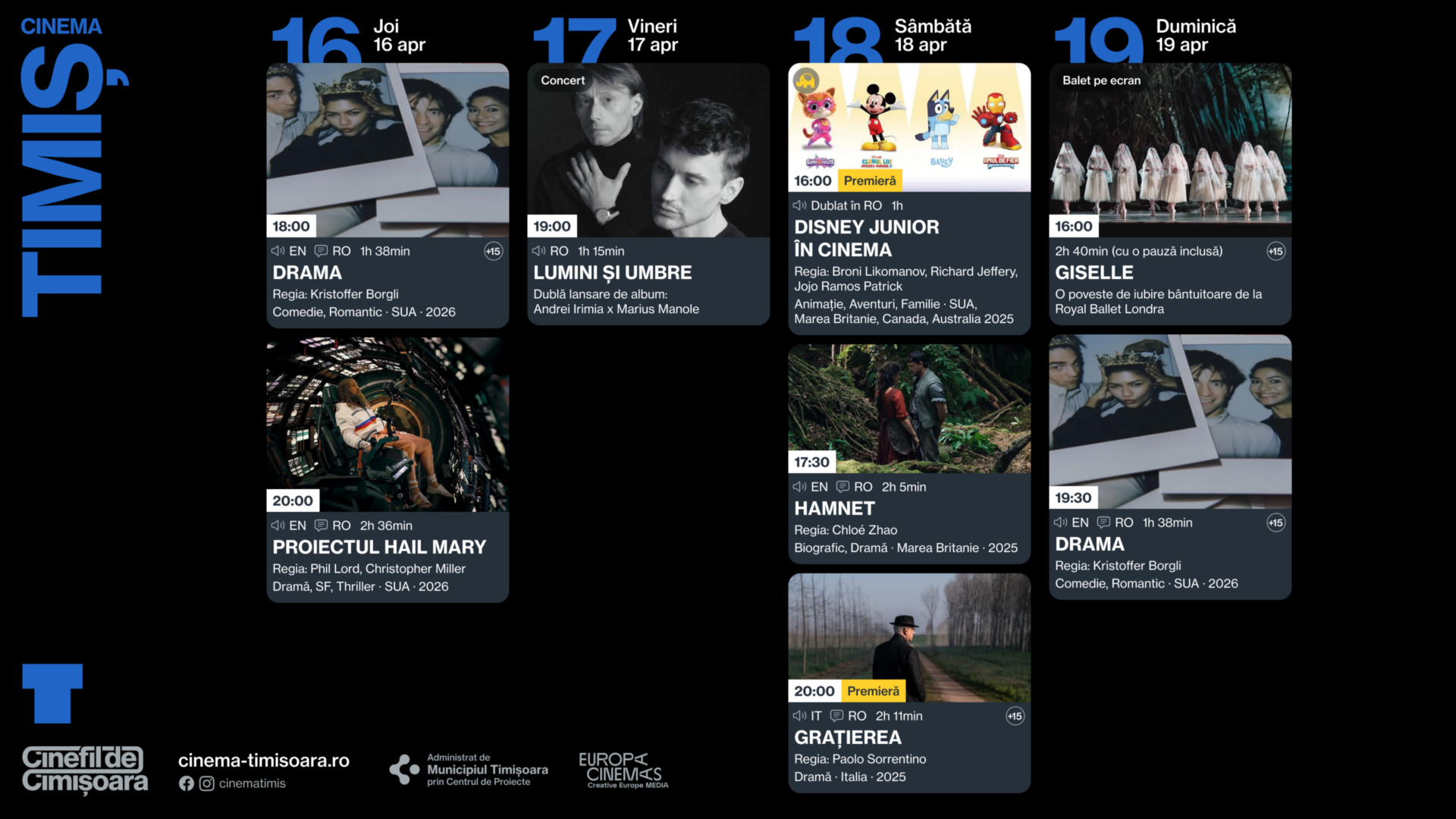 Programul săptămânii 16 – 19 aprilie la Cinema Timiș