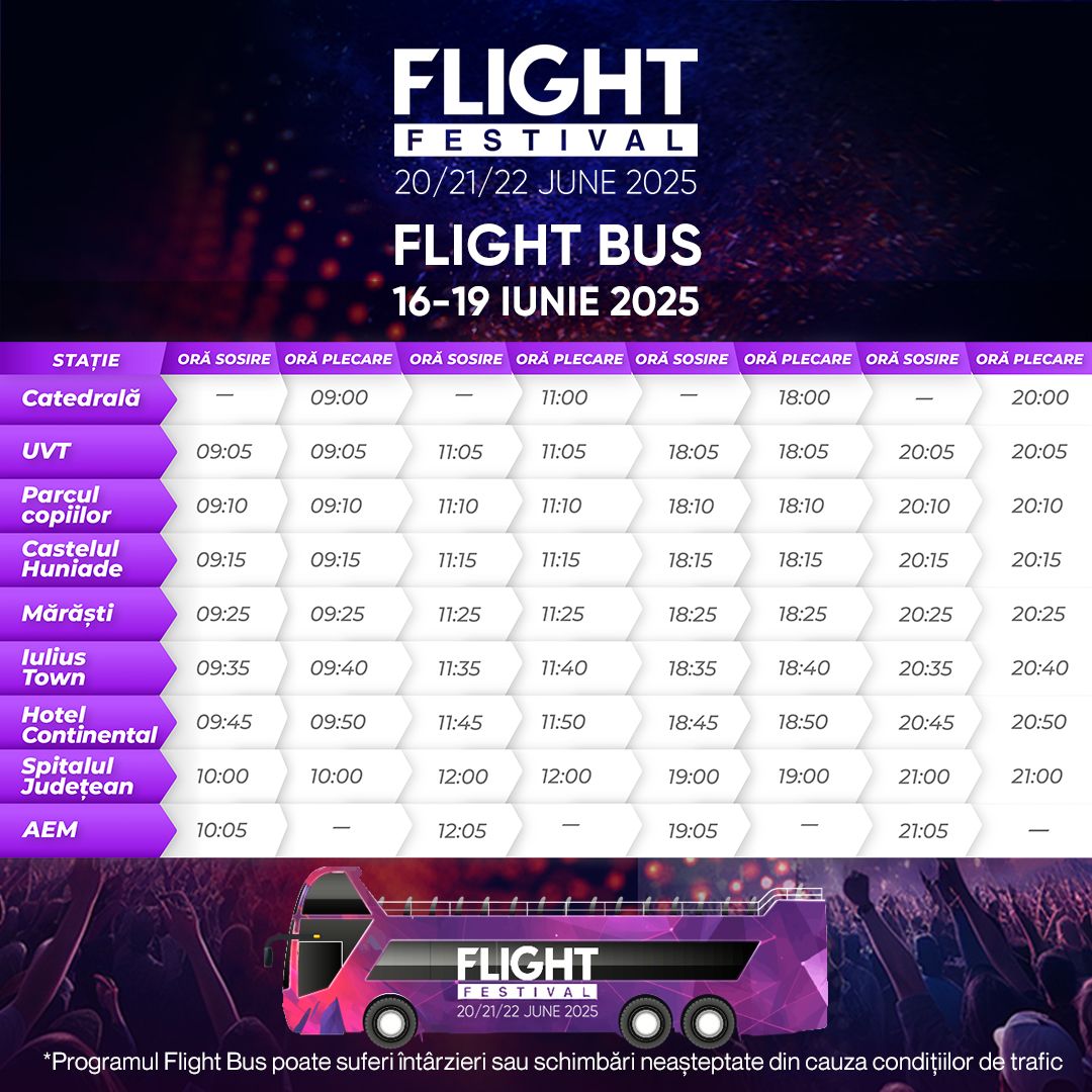 Timișoara vibrează în ritmul festivalului! Prin oraș va circula busul FLIGHT FESTIVAL, un double-decker care va face turul Timișoarei. E un mod inedit (și gratuit!) de a descoperi orașul de pe cele mai bune locuri din „avionul pe roți”, iar în weekend busul pleaca de la Bastion și va duce publicul la Muzeul Satului Bănățean.