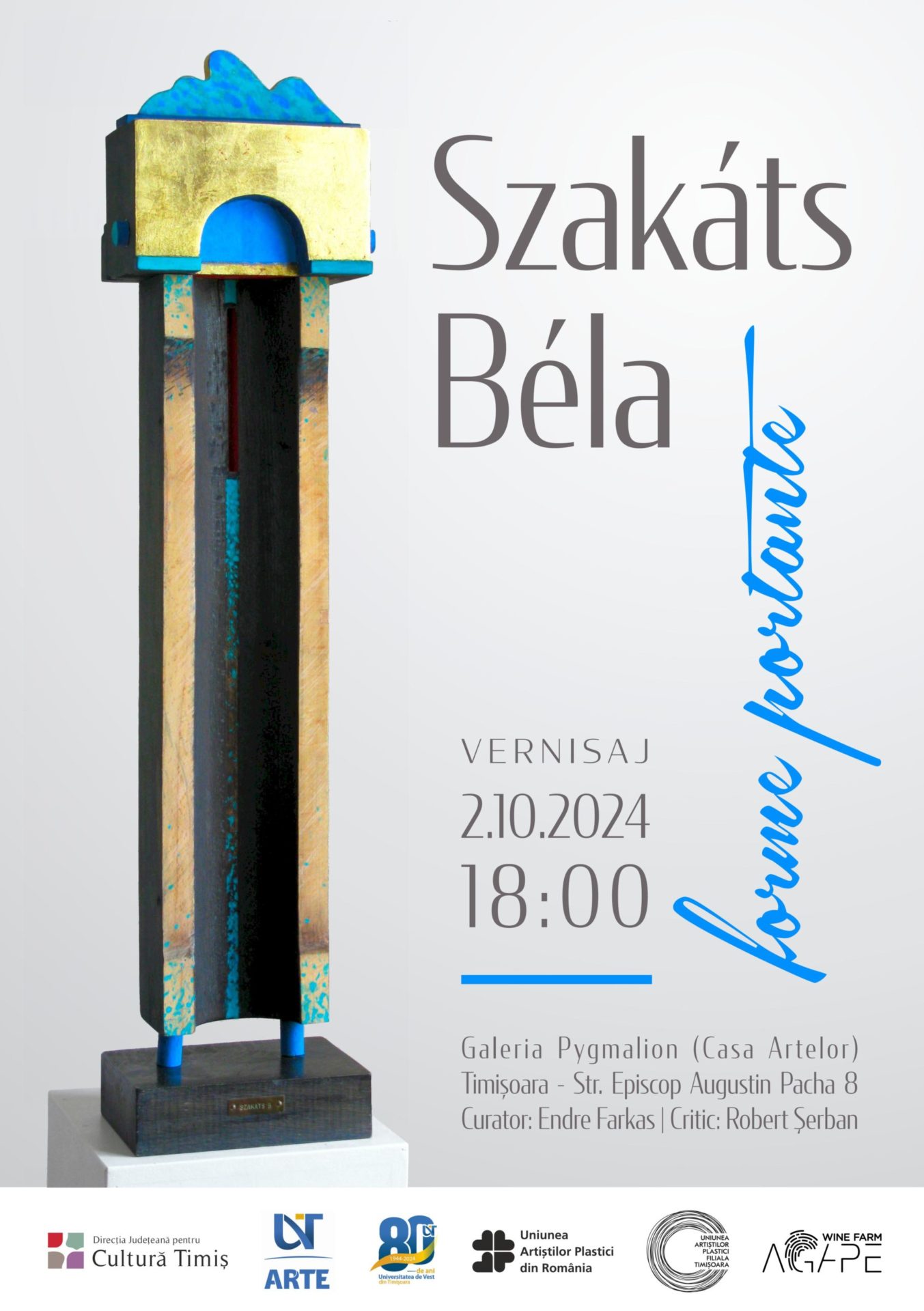 Galeria Pygmalion a Casei Artelor din Timișoara găzduiește miercuri, 2 octombrie, la ora 18.00, vernisajul expoziției Forme portante, semnată Szakáts Béla. Demersul plastic, vernisat de scriitorul Robert Șerban și curatoriat de Endre Farkas, aduce în fața publicului o parte mai puțin cunoscută a creației artistului timișorean: sculptura în lemn.