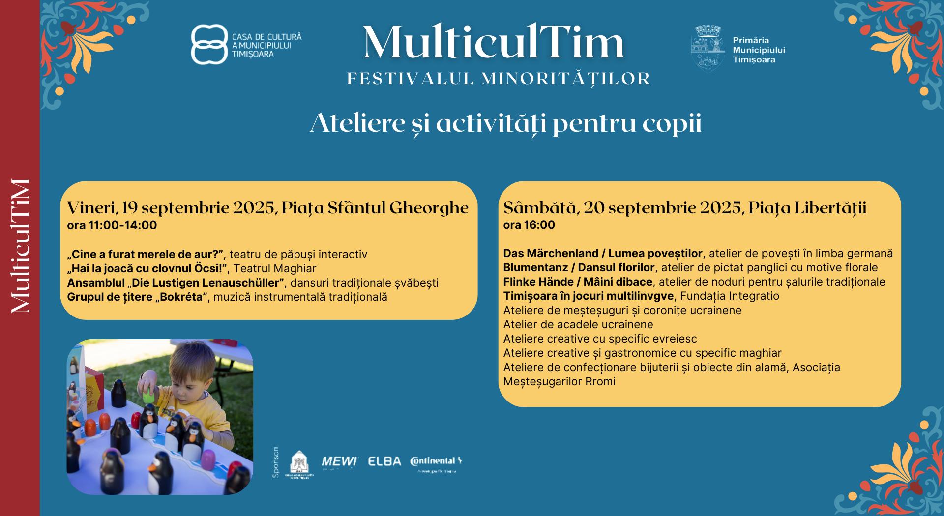 MulticultiM – Festivalul Minorităților Etnice vă așteaptă în Piața Libertății și Piața Sf. Gheorghe din Timișoara cu un program ce cuprinde concerte, ateliere, lansări de carte, activități pentru copii, teatru, parada costumelor și multe surprize.