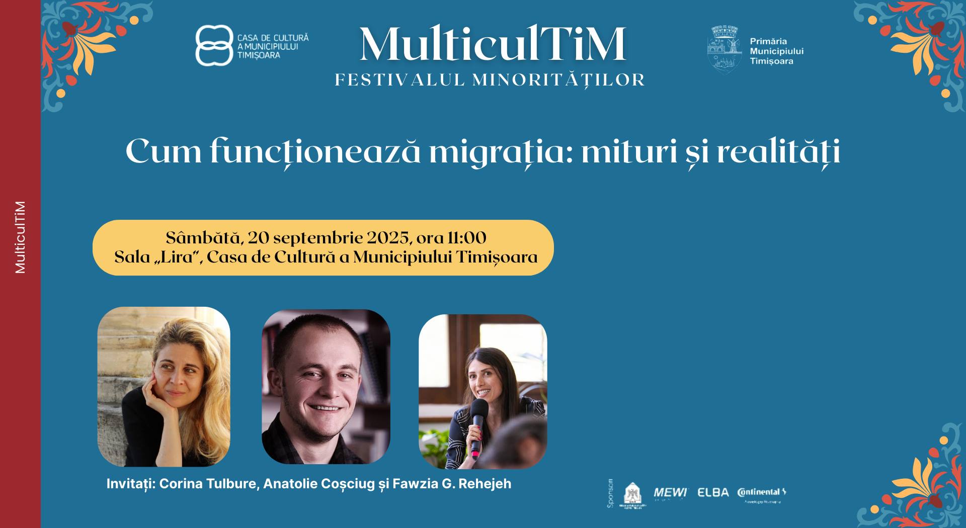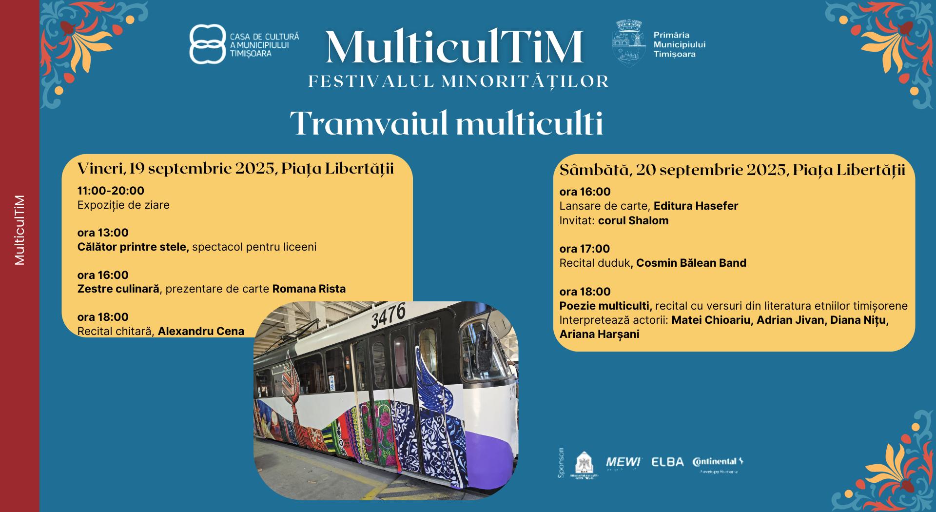 În acest an, un simbol aparte al festivalului este „Tramvaiul Multiculti”, care va găzdui lansări de carte, recitaluri de poezie și chitară, spectacole pentru tineri și expoziții dedicate culturilor minoritare. De asemenea, sâmbătă, la Sala Lira, va avea loc dezbaterea „Cum funcționează migrația: mituri și realități”, cu participarea sociologilor Corina Tulbure și Anatolie Coșciug, dar și a activistei Fawzia G. Rehejeh, reprezentantă a comunității arabe din Sibiu.