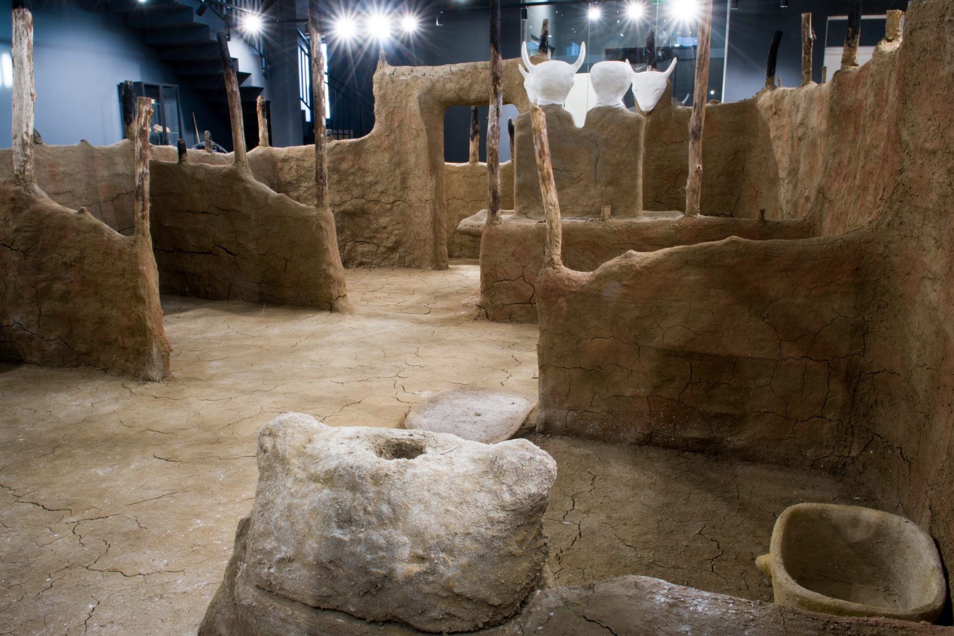 Printre cele mai impresionante descoperiri se numără grupul statuar de aproximativ 2 metri înălțime, dintr-un singur bloc, reprezentând două siluete, dintre care una feminină și alta având cap de taur. Această piesă centrală a străvechiului templu de la Parța, replicată în punctul muzeal, subliniază importanța ritualurilor care aveau loc în încăperea sacră, accesibilă doar celor inițiați.