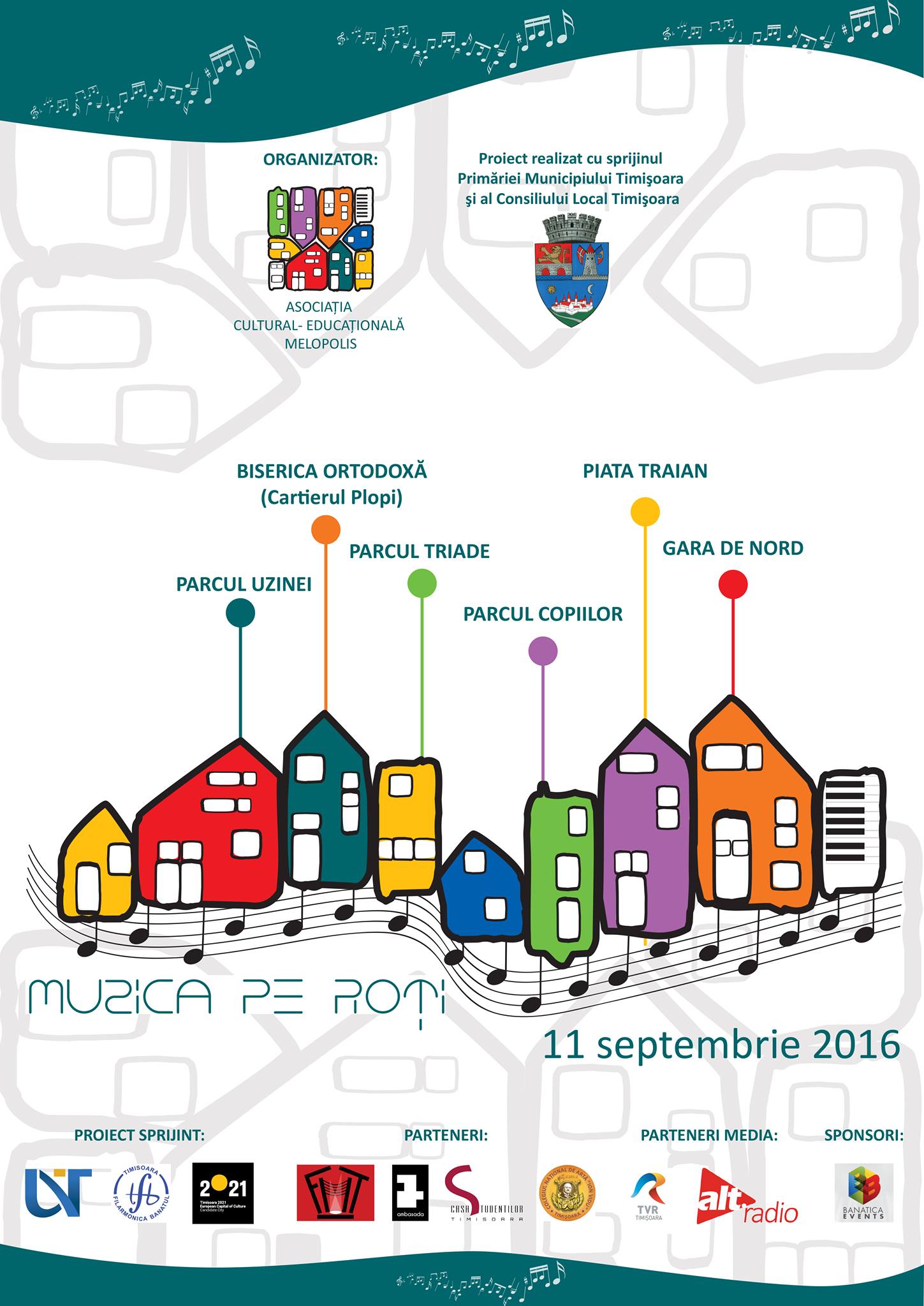 Este vorba despre o serie de șase concerte care vor avea loc în tot atâtea cartiere timișorene: Biserica Ortodoxă din Plopi (ora 11.45), Parcul Uzinei (ora 13.00), Piața Traian (ora 14.00), Parcul Copiilor- intrare str. Michelangelo (ora 15.30), Parcul Triade (ora 17.30) și Gara de Nord – holul caselor de bilete (ora 19.00).