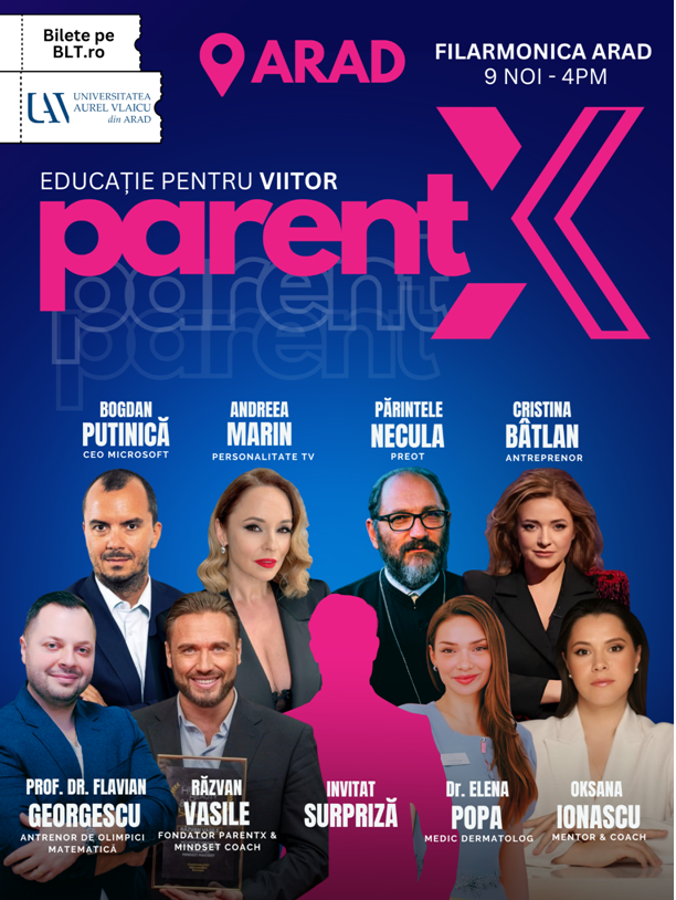PARENTX, fenomenul educațional ce promite să schimbe percepțiile și să deschidă noi orizonturi în relaționarea părinte-copil, ajunge sâmbătă, 9 noiembrie 2024 la Arad. Evenimentul are loc, de la ora 16:00, la Filarmonica Arad.