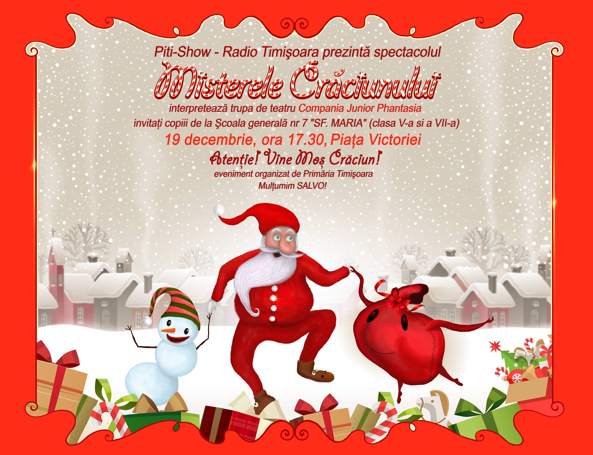 Evenimentul va avea loc în cadrul spectacolului “Misterele Crăciunului”, un eveniment de cântece şi dansuri cu Piti Show-Radio Timişoara, Compania Junior Phantasia şi Trupa de teatru a Şcolii generale nr. 7 Sfânta Maria.