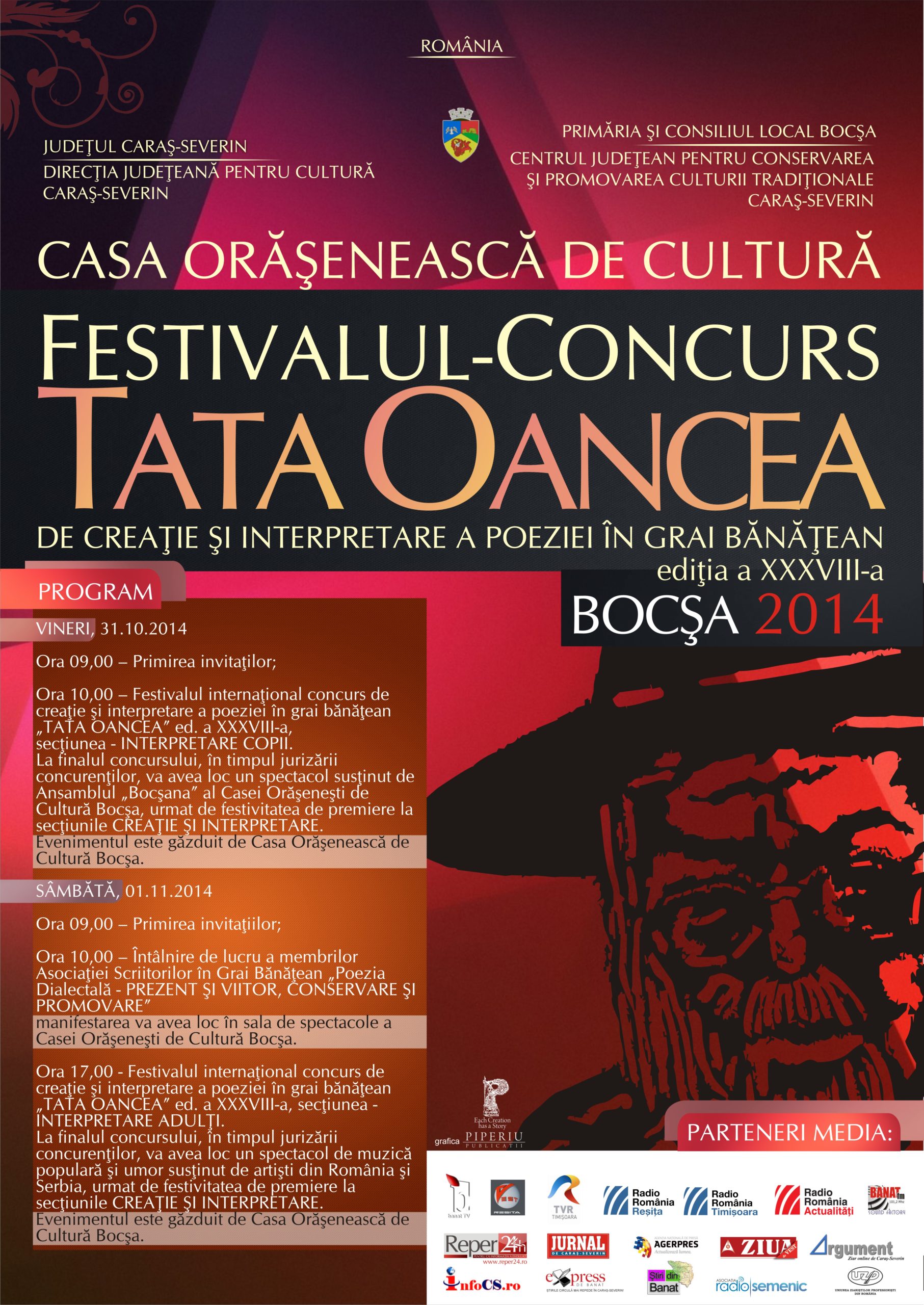 31 octombrie 2014 – 1 noiembrie 2014 @ 0:00 – Peste 150 de copii, de la preşcolari până la ciclul liceal, se întrec vineri, 31 octombrie 2014,  în cadrul festivalului care-l omagiază pe unul dintre cei mai de seamă creatori de literatură dialectală din Banatul secolului al XX-lea, Petru Oancea, cunoscut sub pseudonimul Tata Oancea. Concursul începe la ora 10.00, la Casa Orăşenească de Cultură […]