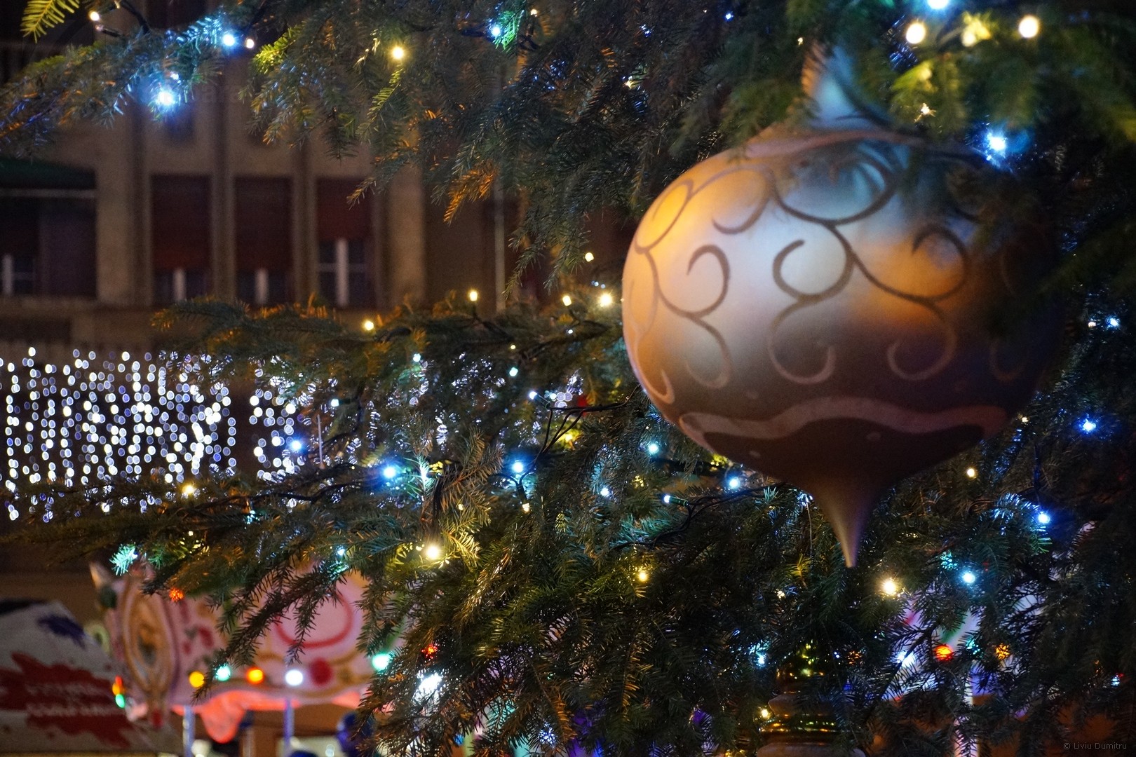 Pe platoul din faţa Operei Naţionale Române este montată, ca şi în anii trecuţi, o cupolă luminoasă cu 60 000 de leduri albe. În Piaţa Victoriei a poposit sania lui Moş Crăciun, decorată cu luminiţe de sărbătoare, iar bradul uriaş este împodobit cu 50 de şiruri luminoase cu 1000 de leduri şi globuri. Pe străzile Alba Iulia, Mărășești, dar și în jurul Catedralei sunt montate figurine luminoase 3D, perdele luminoase și plase.