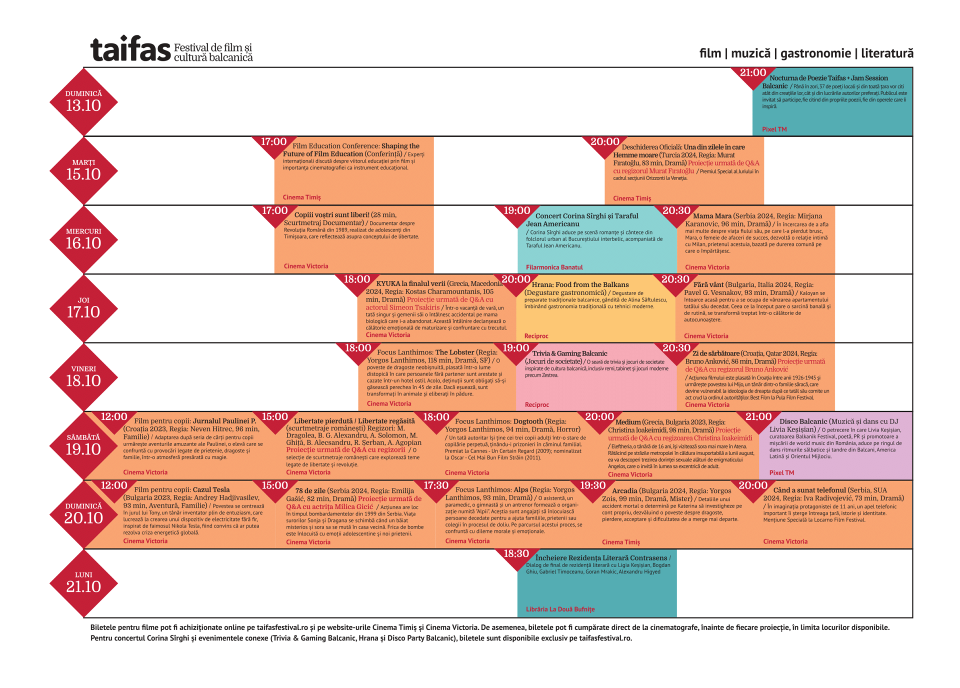 „De la libertățile pierdute ale secolului trecut la libertăți redescoperite și reinventate, la această ediție a Festivalului Taifas explorăm libertatea balcanică în toate formele ei tematice și stilistice. Sunt drame, SFuri, filme experimentale și filme pentru copii din Grecia, Serbia, Bulgaria, Turcia, Croația și România, cu un total de 11 lungmetraje, dintre care 10 în premieră națională și o selecție de scurtmetraje românești, inclusiv un documentar prezentat în premieră mondială la Taifas” – spune Cătălin Olaru, directorul artistic al festivalului​.