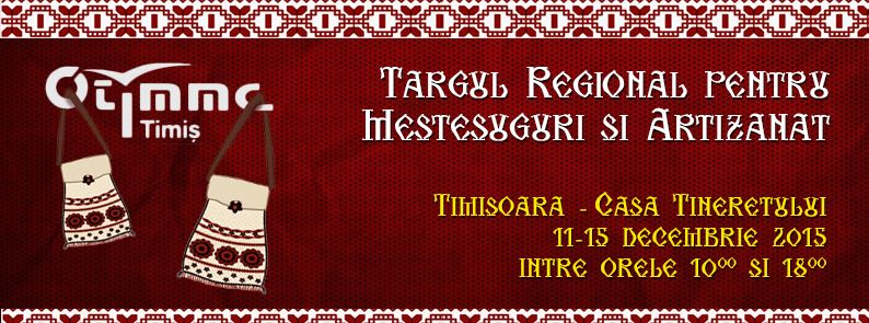 Peste 20 de mici producători artizanali şi meşteşugari se reunesc la Timişoara la Târgul Regional pentru Artizanat și Meșteșuguri, care va avea loc la Casa Tineretului în perioada 11 – 15 decembrie 2015.