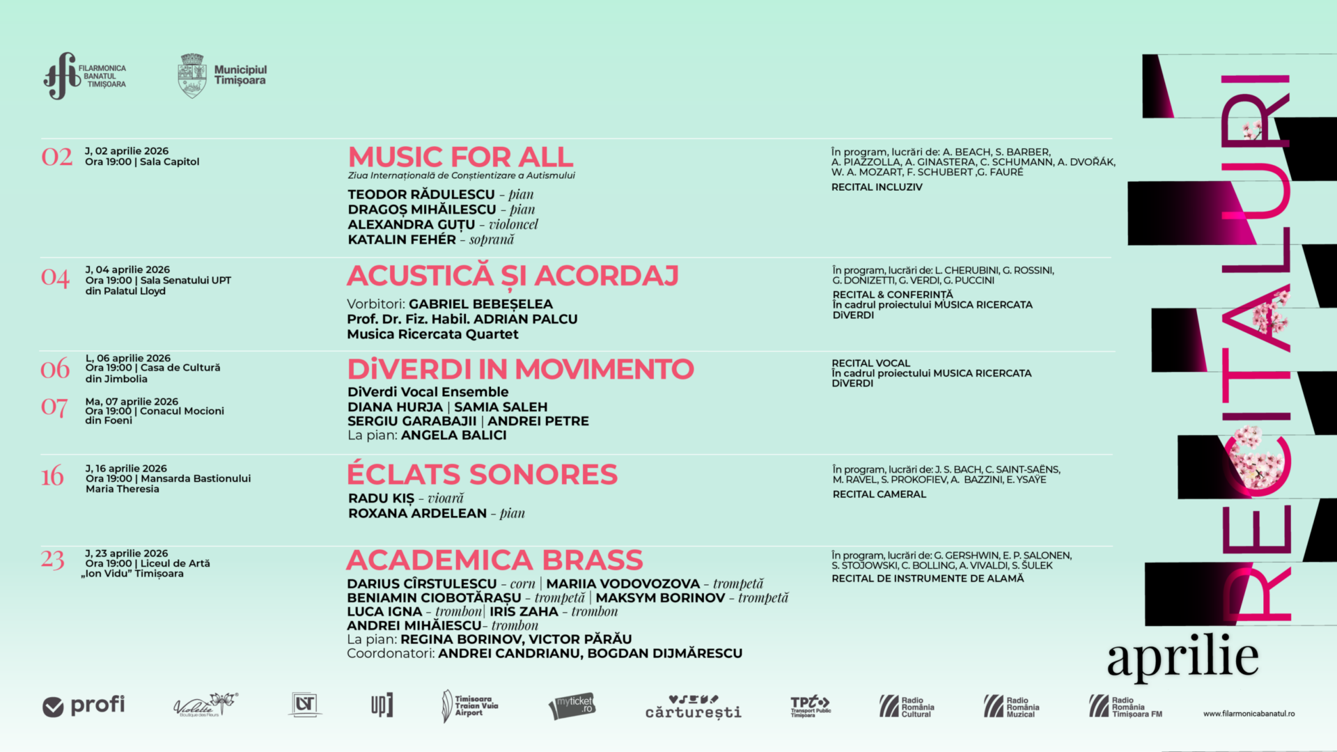- 4 aprilie | Acustică și acordaj | Sala Senatului UPT (Palatul Lloyd), ora 19:00